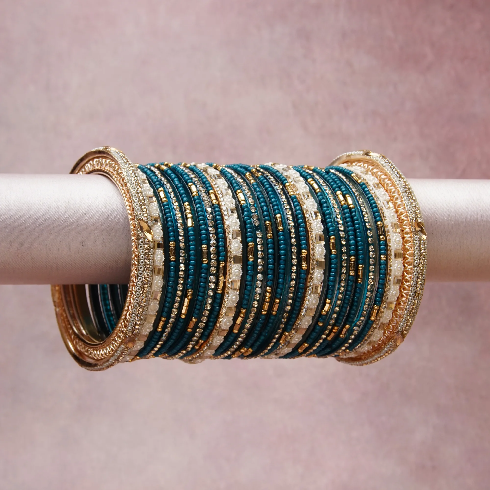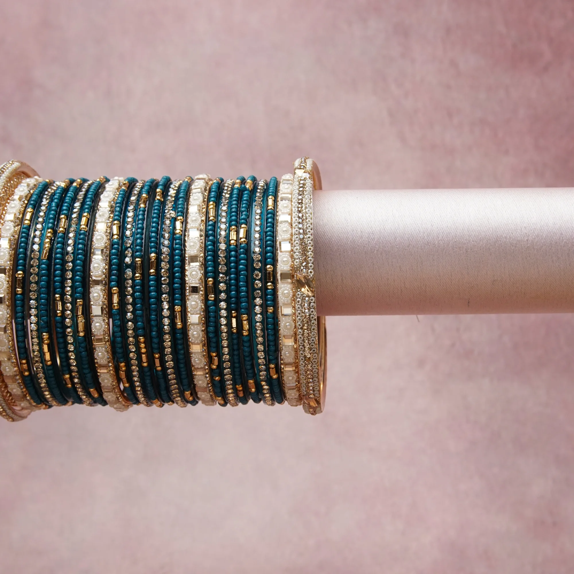 A grounding Teal forms the heart of the set, while touches of Gold, Ivory, Clear add charm.