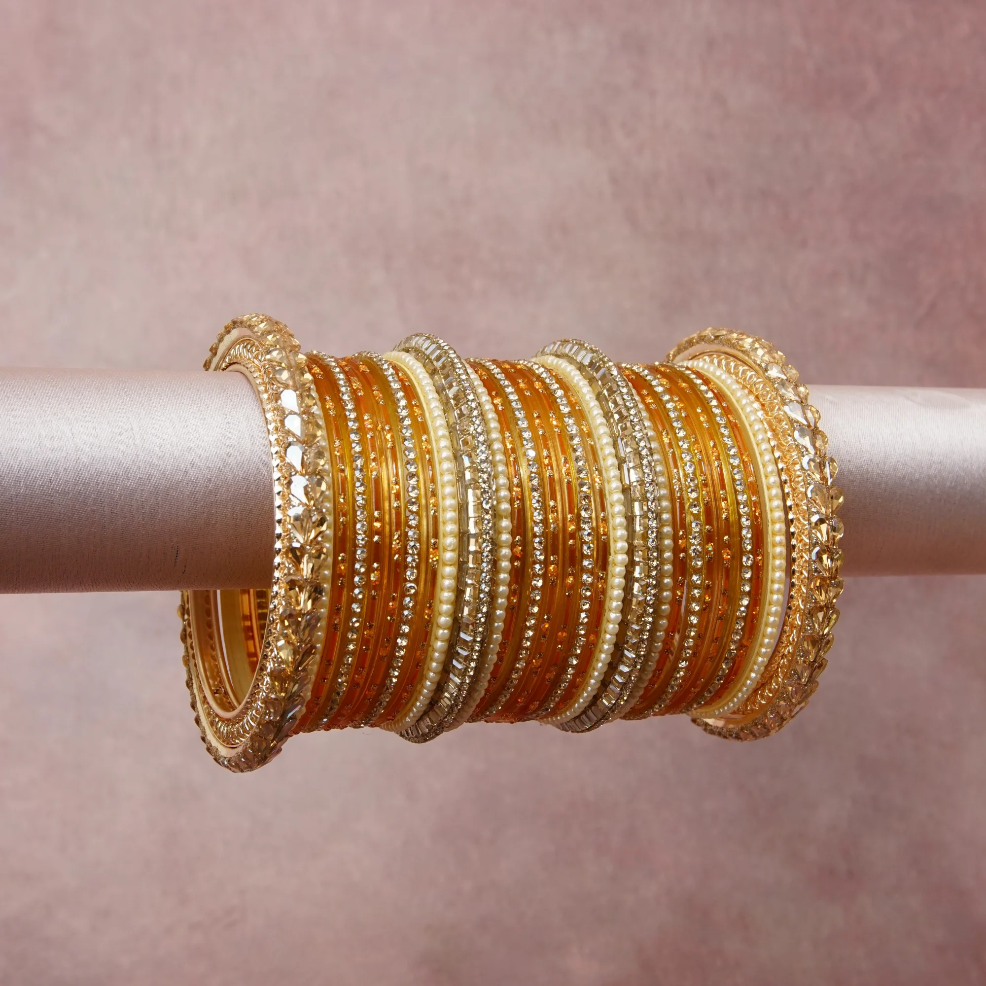 A grounding Orange forms the heart of the set, while touches of Rich Gold, Ivory, Clear Crystal add charm.