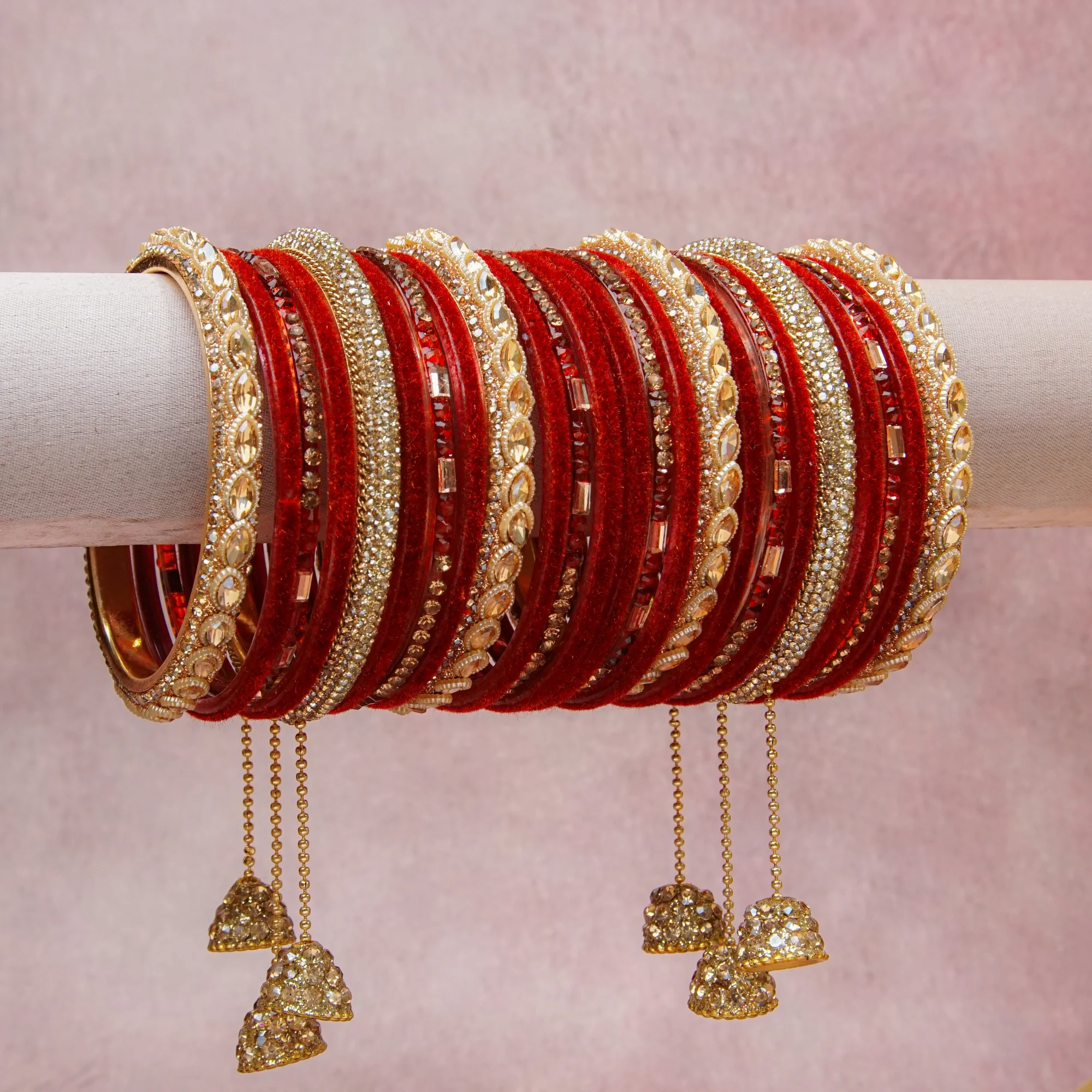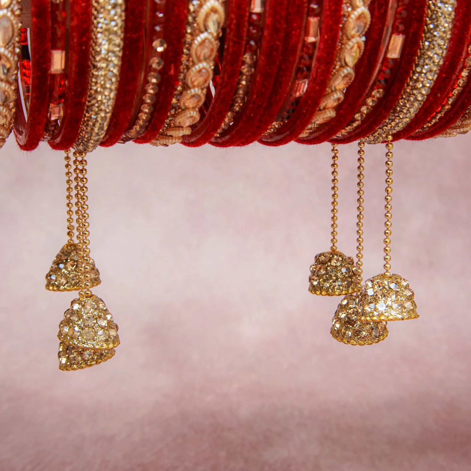 A grounding Ruby Red forms the heart of the set, while touches of Gold, Clear Crystal, Champagne, Antique Gold, Crystal Clear add charm.