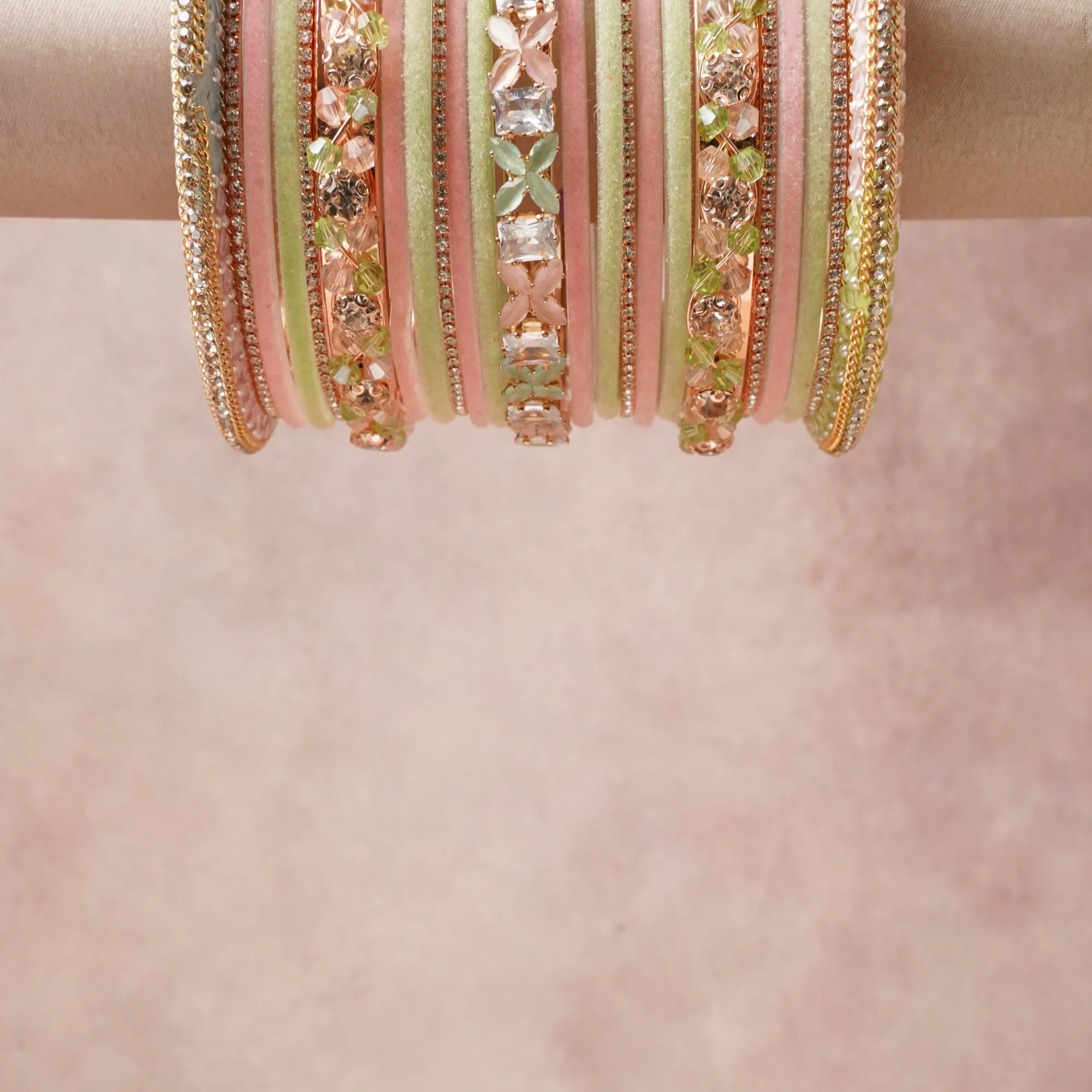 A grounding Blush Pink forms the heart of the set, while touches of Clear Diamond White, Rose Gold, Pale Chartreuse add charm.
