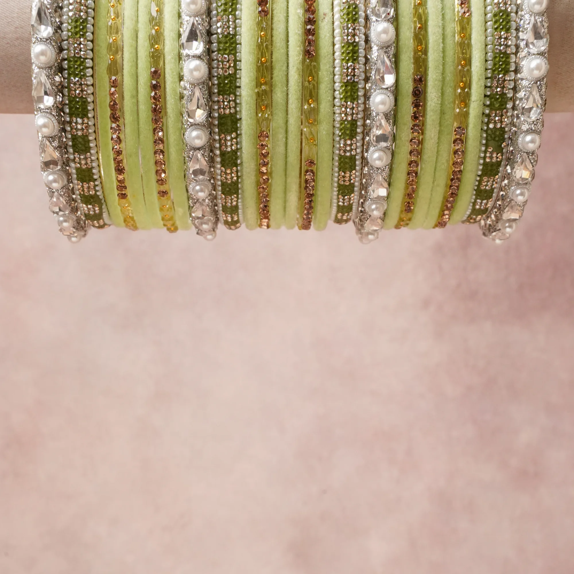 A grounding Pale Pistachio Green forms the heart of the set, while touches of Crystal Clear, Pearl White, Silver, Rose Gold, Olive Green add charm.