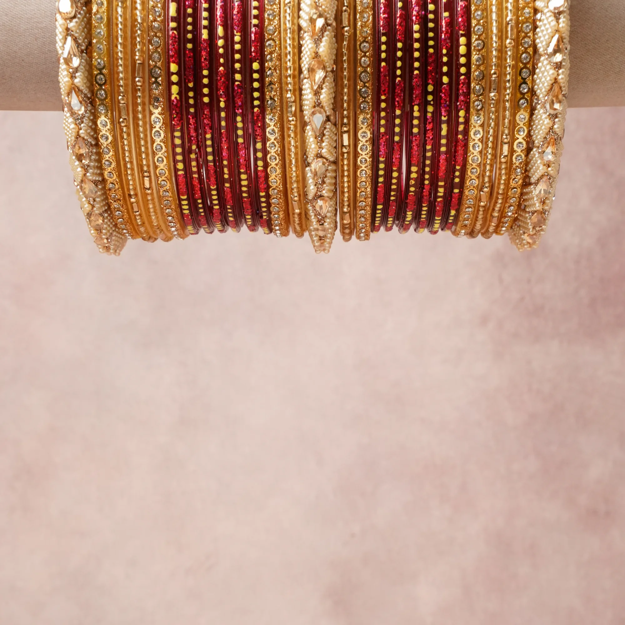 A grounding Champagne Gold forms the heart of the set, while touches of Burgundy, Ivory, Poppy Red, Polished Gold add charm.