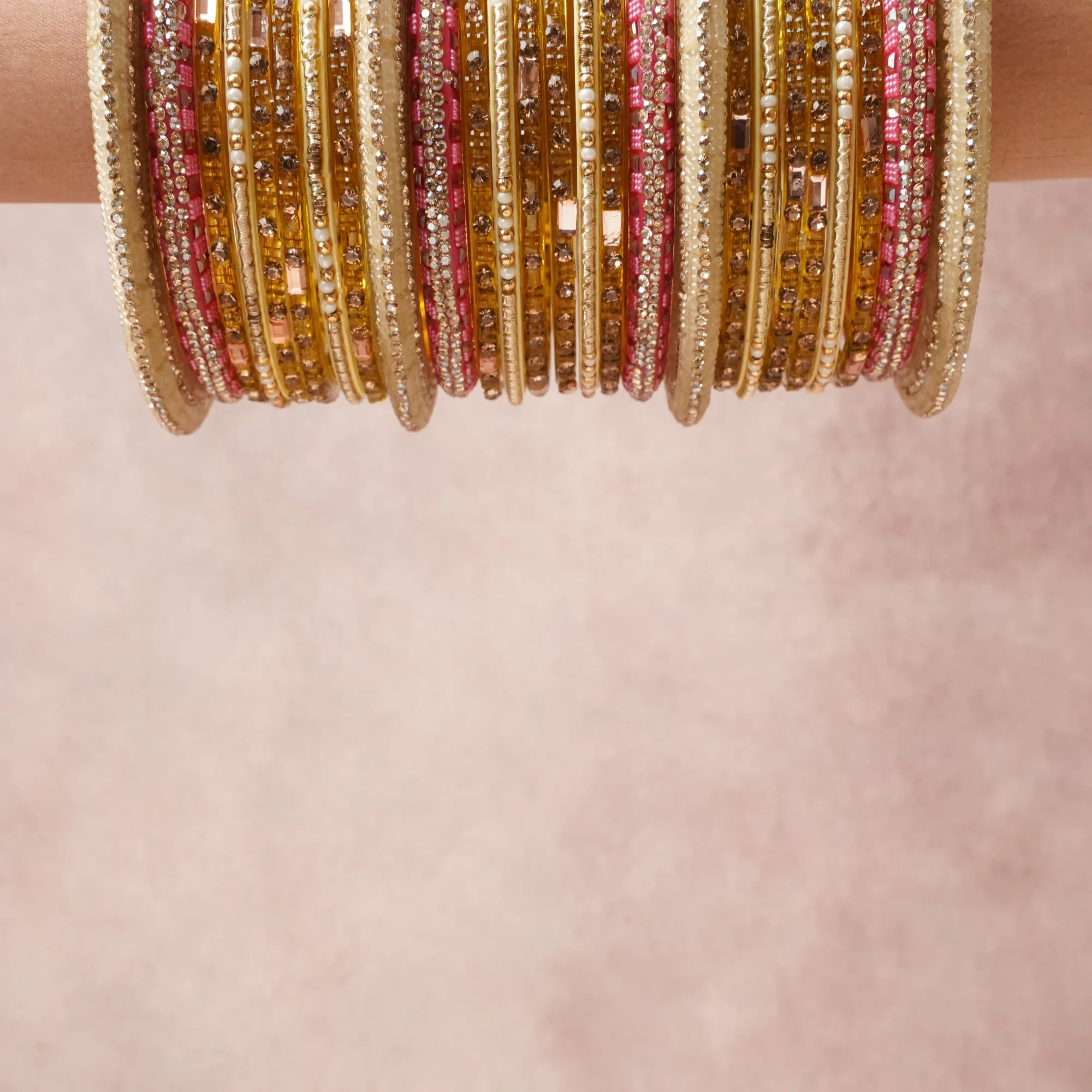 A grounding Cream forms the heart of the set, while touches of Fuchsia, Clear Crystal, Pale Yellow, Gold add charm.