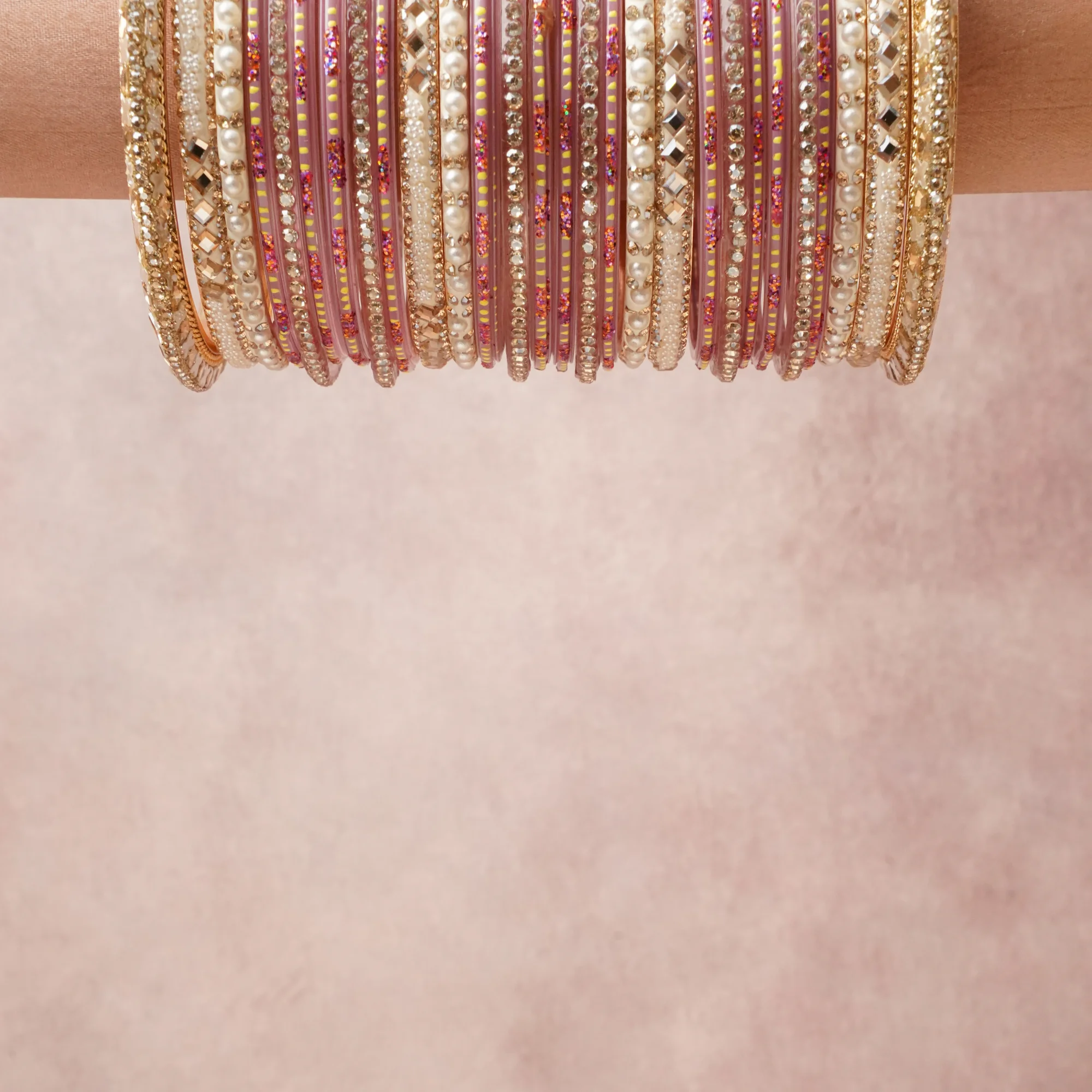A grounding Mauve forms the heart of the set, while touches of Gold, White, Clear Crystal add charm.