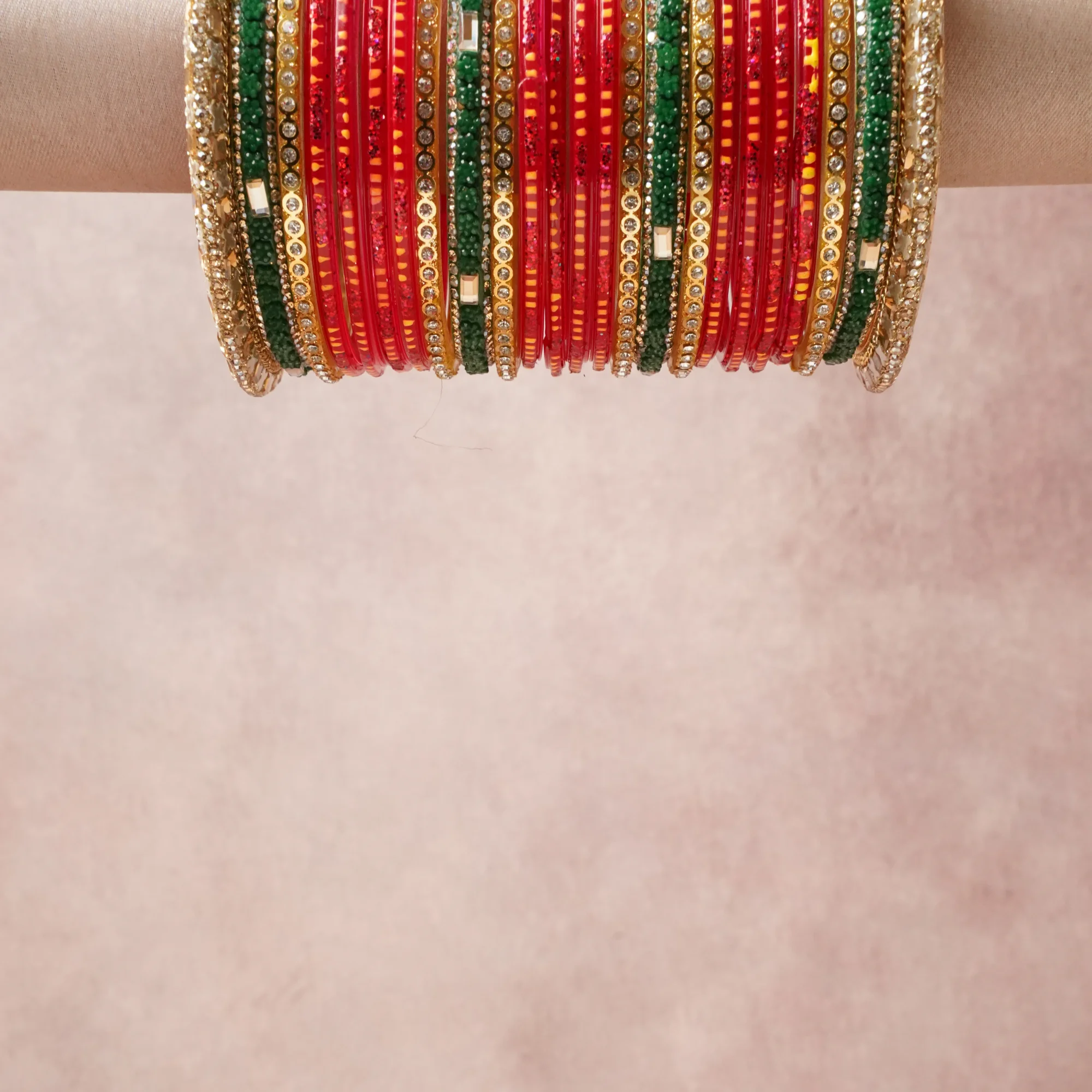 A grounding Red forms the heart of the set, while touches of Gold, Clear, Yellow, Pink add charm.