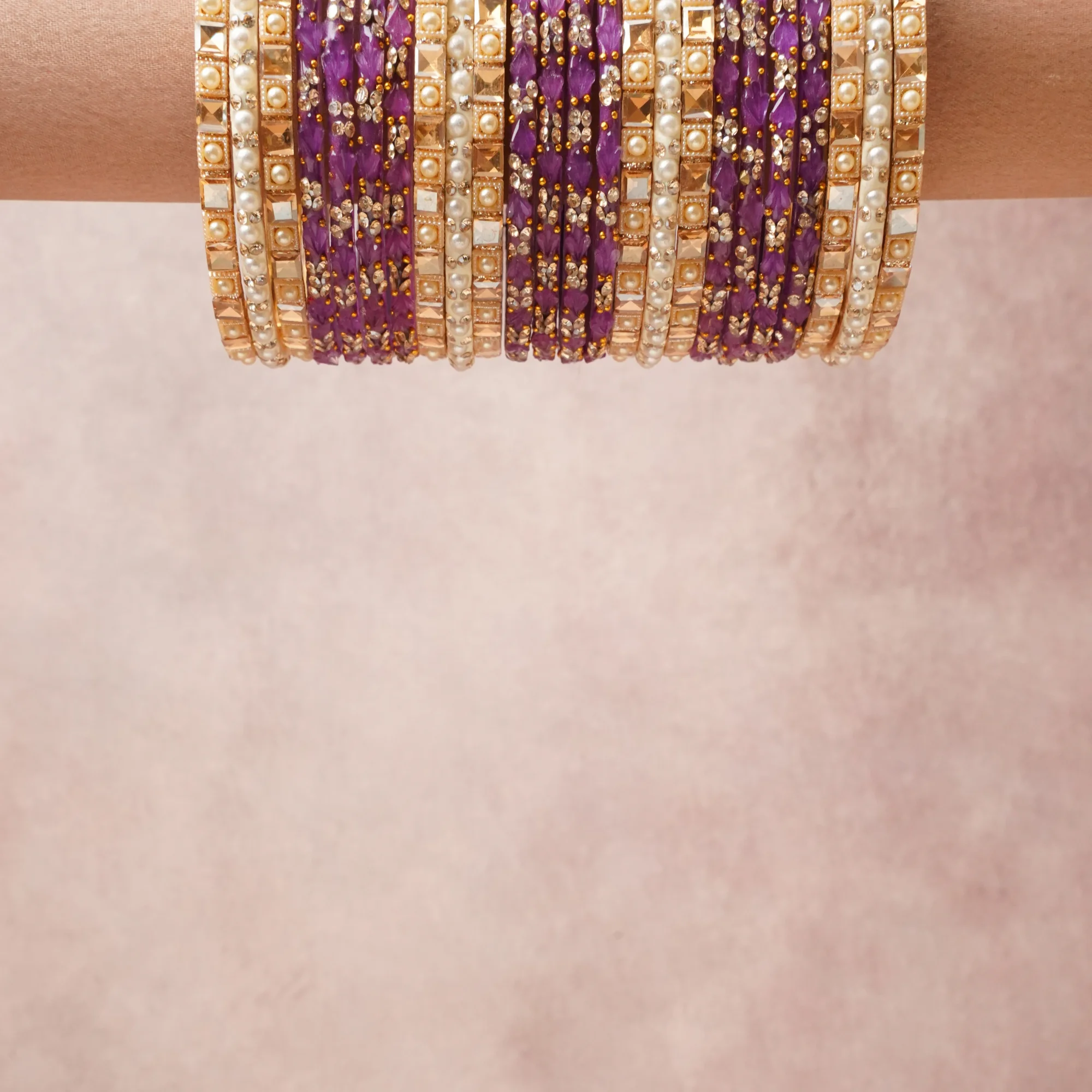 A grounding Purple forms the heart of the set, while touches of Ivory, Antique Gold, Clear add charm.