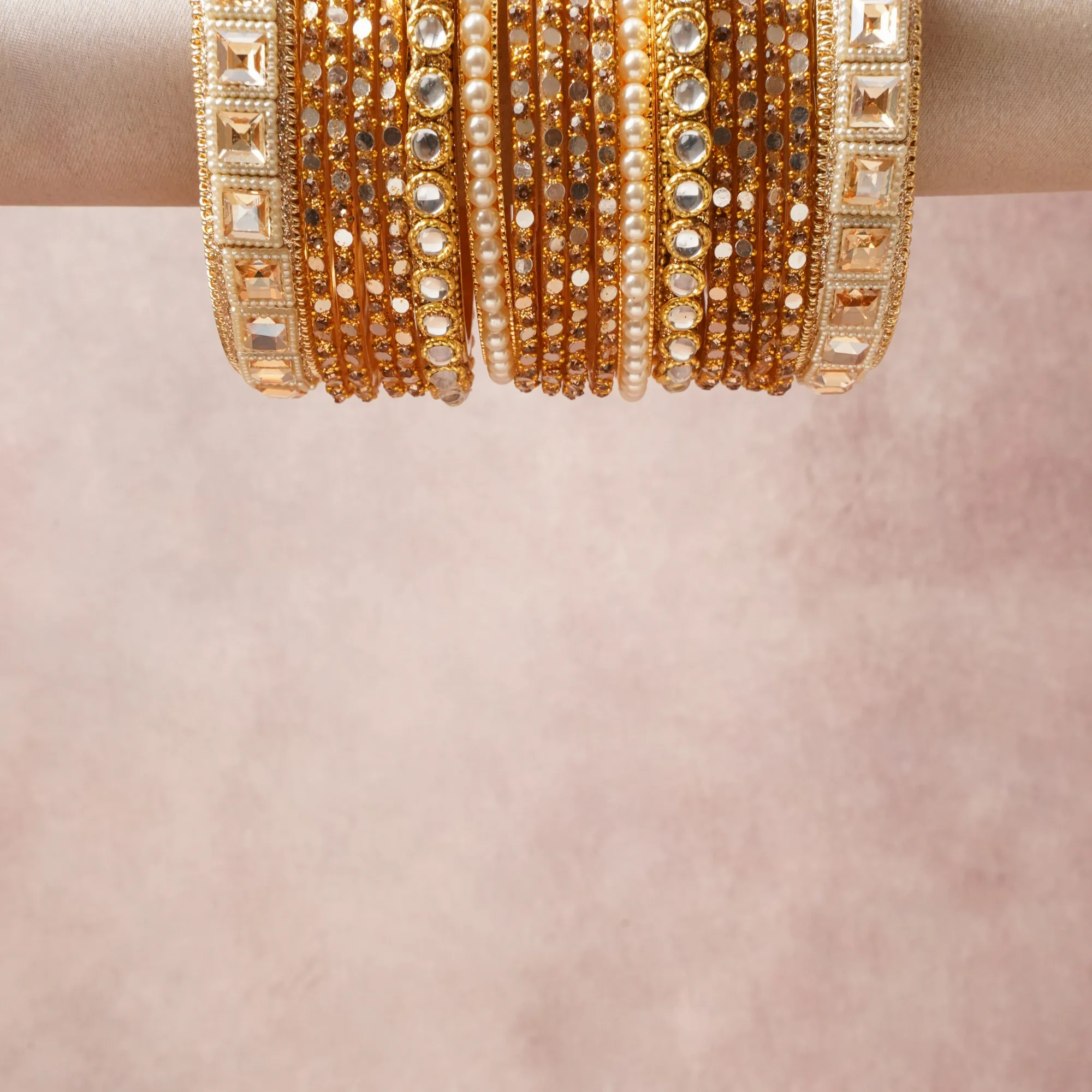 A grounding Gold forms the heart of the set, while touches of Cream, Clear, Champagne add charm.
