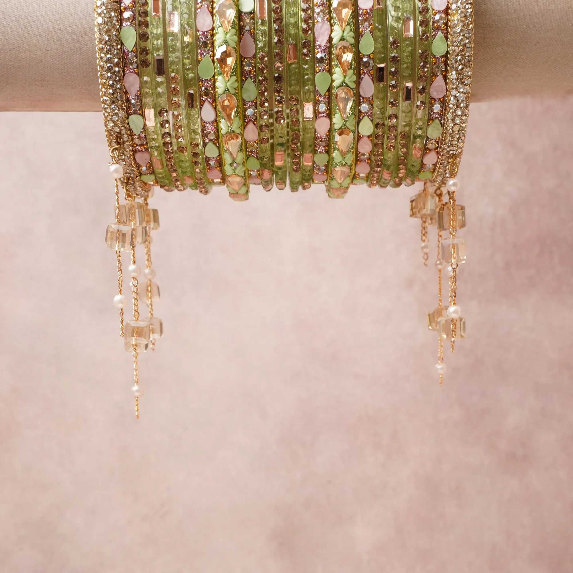 A grounding Green forms the heart of the set, while touches of Blush Pink, Champagne, Crystal Clear, Gold, Pearl White add charm.