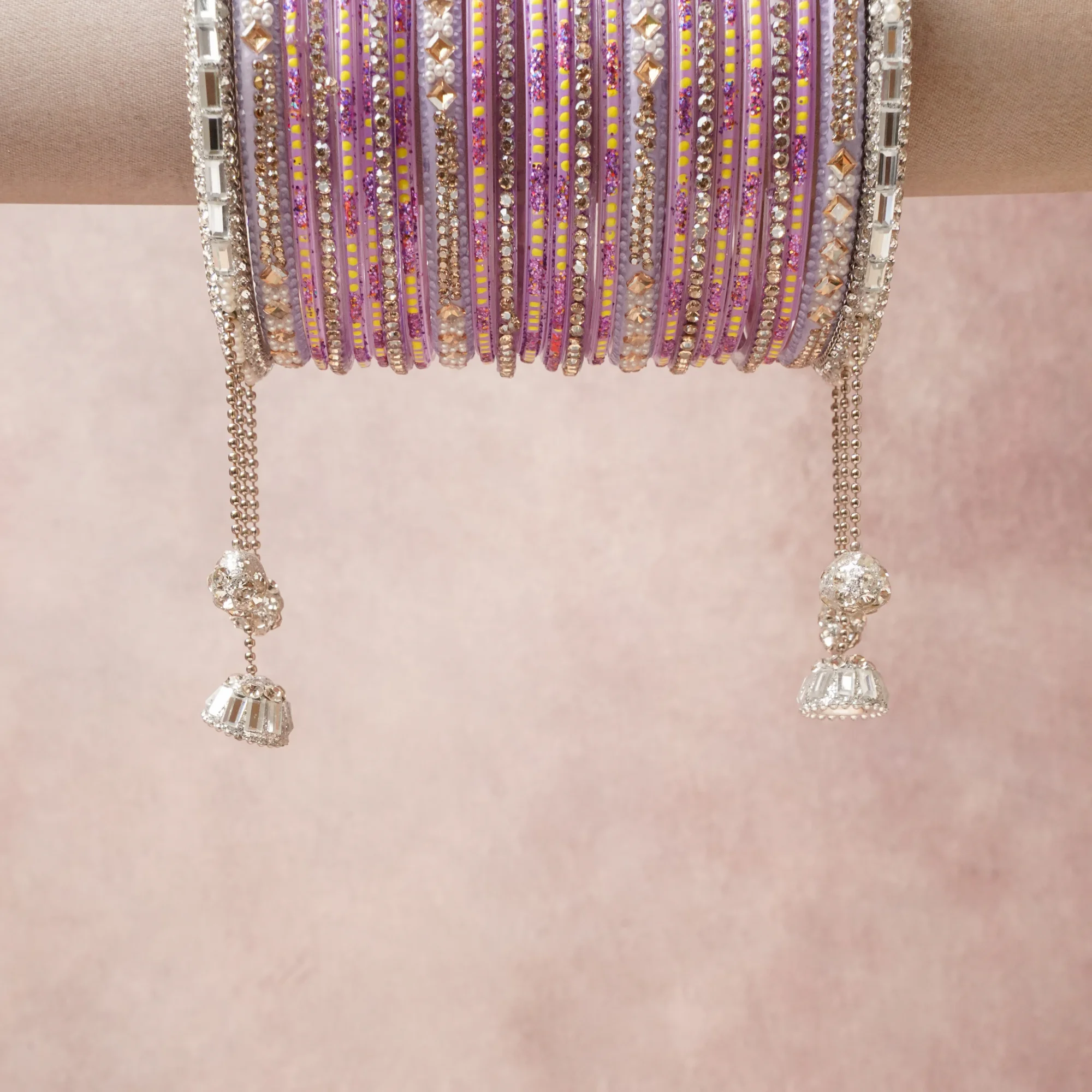 A grounding Lavender forms the heart of the set, while touches of Bright Yellow, Amethyst, Silver, Clear, Cream, Warm Gold add charm.