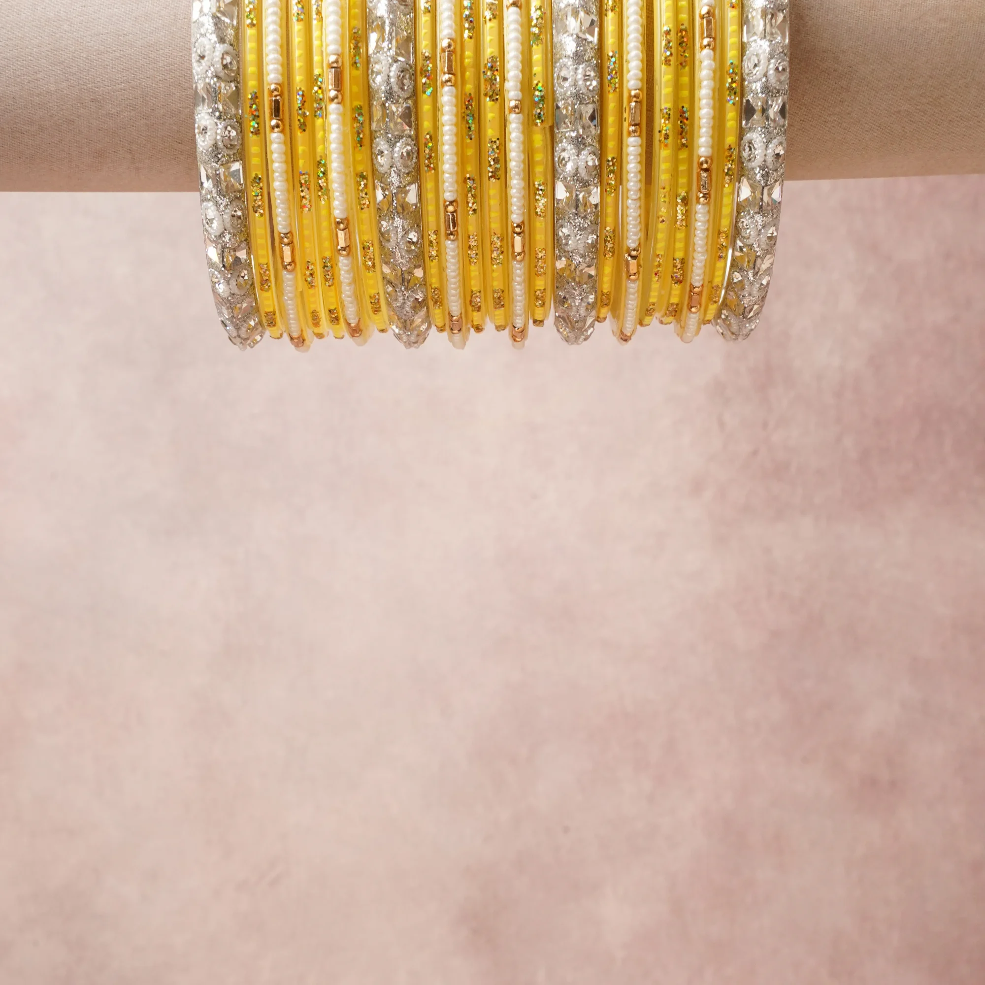 A grounding Lemon Yellow forms the heart of the set, while touches of Silver, Cream White, Antique Gold, Emerald Green add charm.