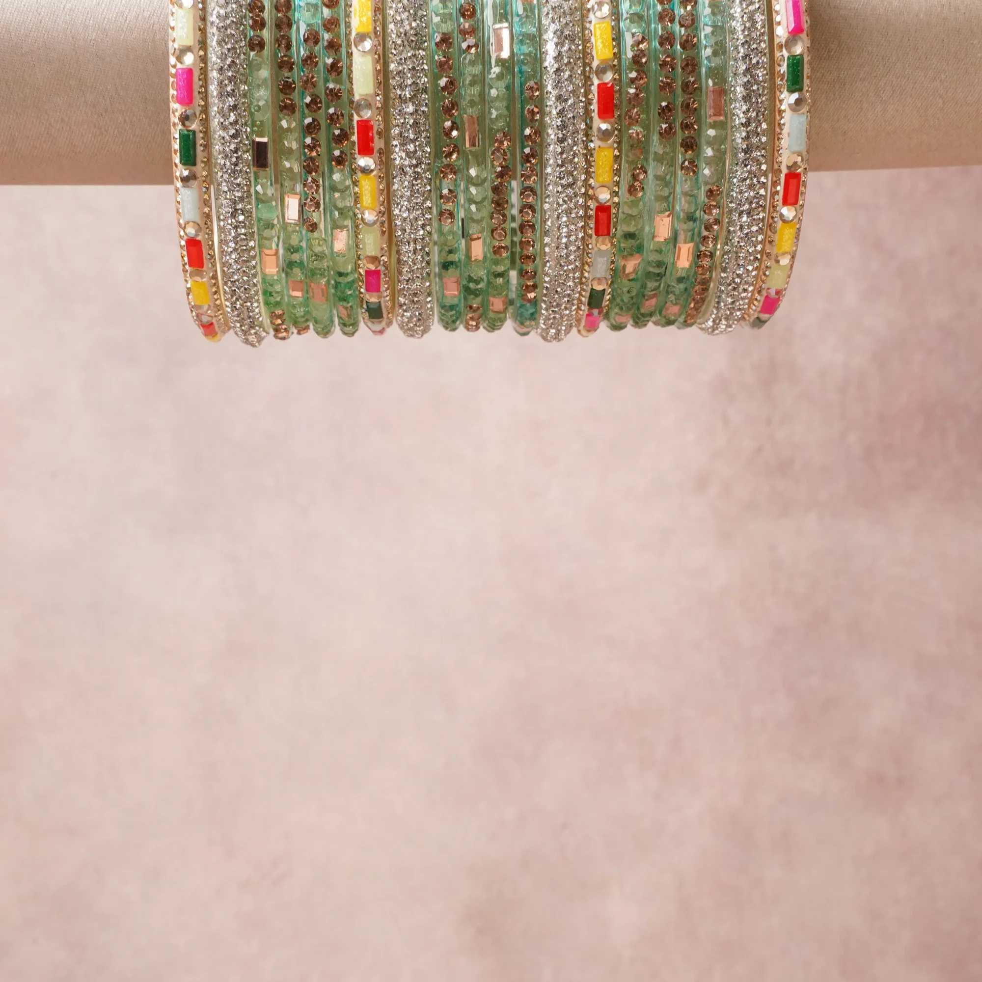 A grounding Mint Green forms the heart of the set, while touches of Ruby Red, Fuchsia Pink, Lemon Yellow, Sky Blue, Ivory add charm.