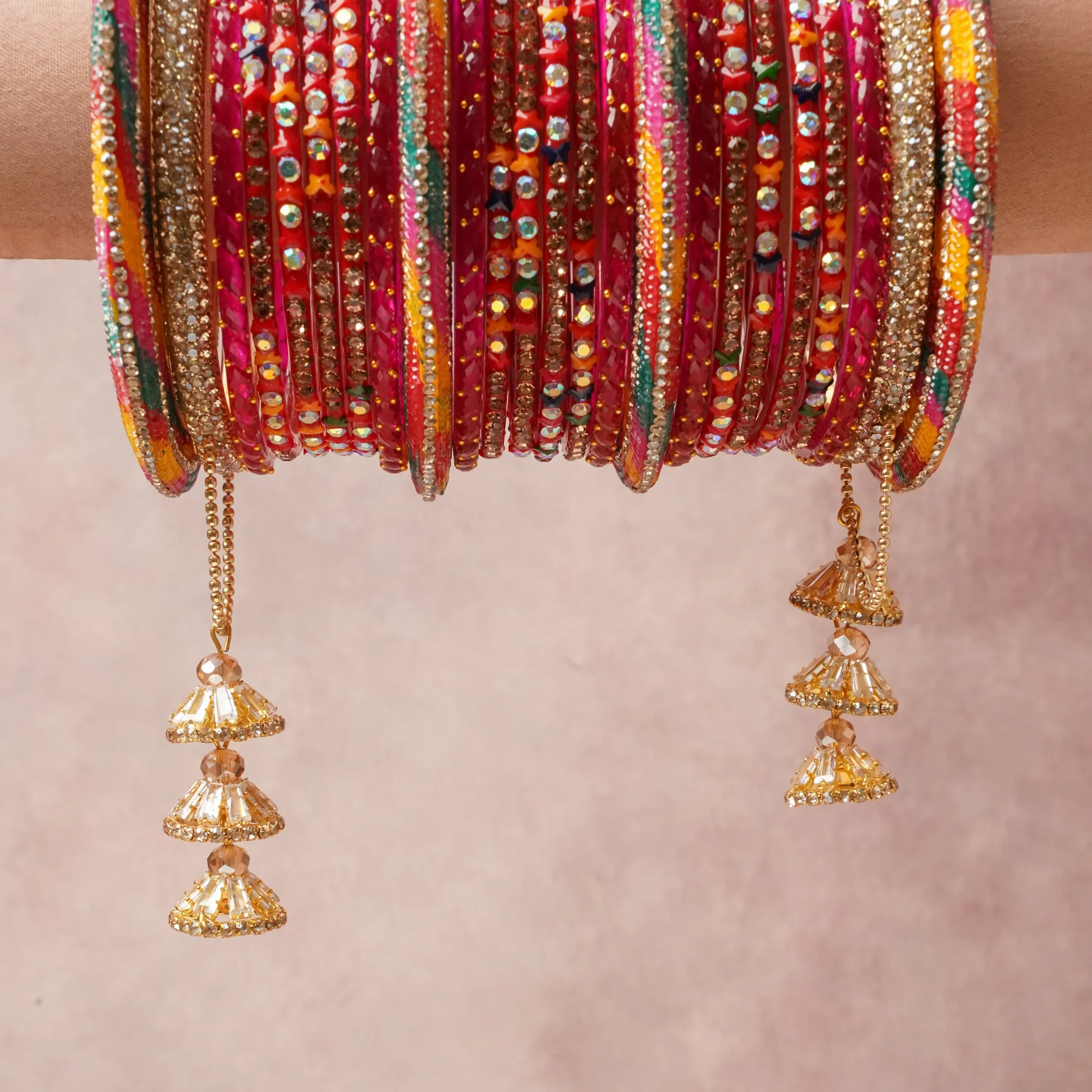 A majestic Maroon Red set, complemented by Gold, Clear Rhinestone, Yellow, Emerald Green, Fuchsia Pink, Multicolor Rhinestone featuring Glass, Rhinestones, Gold-toned Metal, Lac.