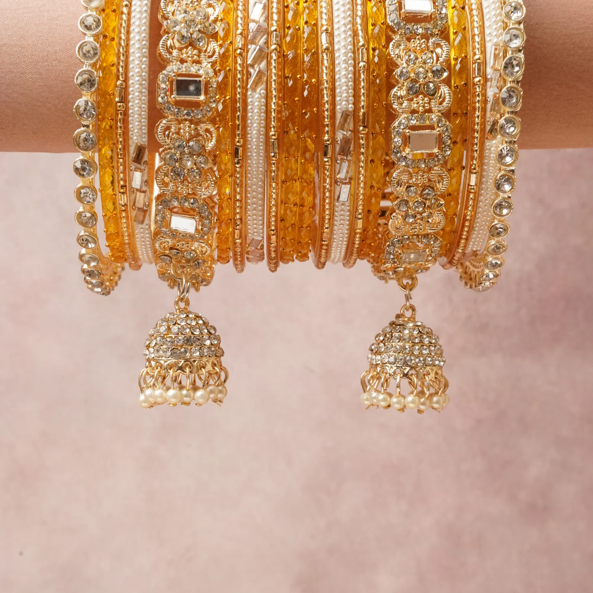 A majestic Amber Yellow set, complemented by Cream featuring Gold-toned Alloy, Resin, Faux Pearl, Rhinestone. Rich, ceremonial, and designed to be passed through generations.