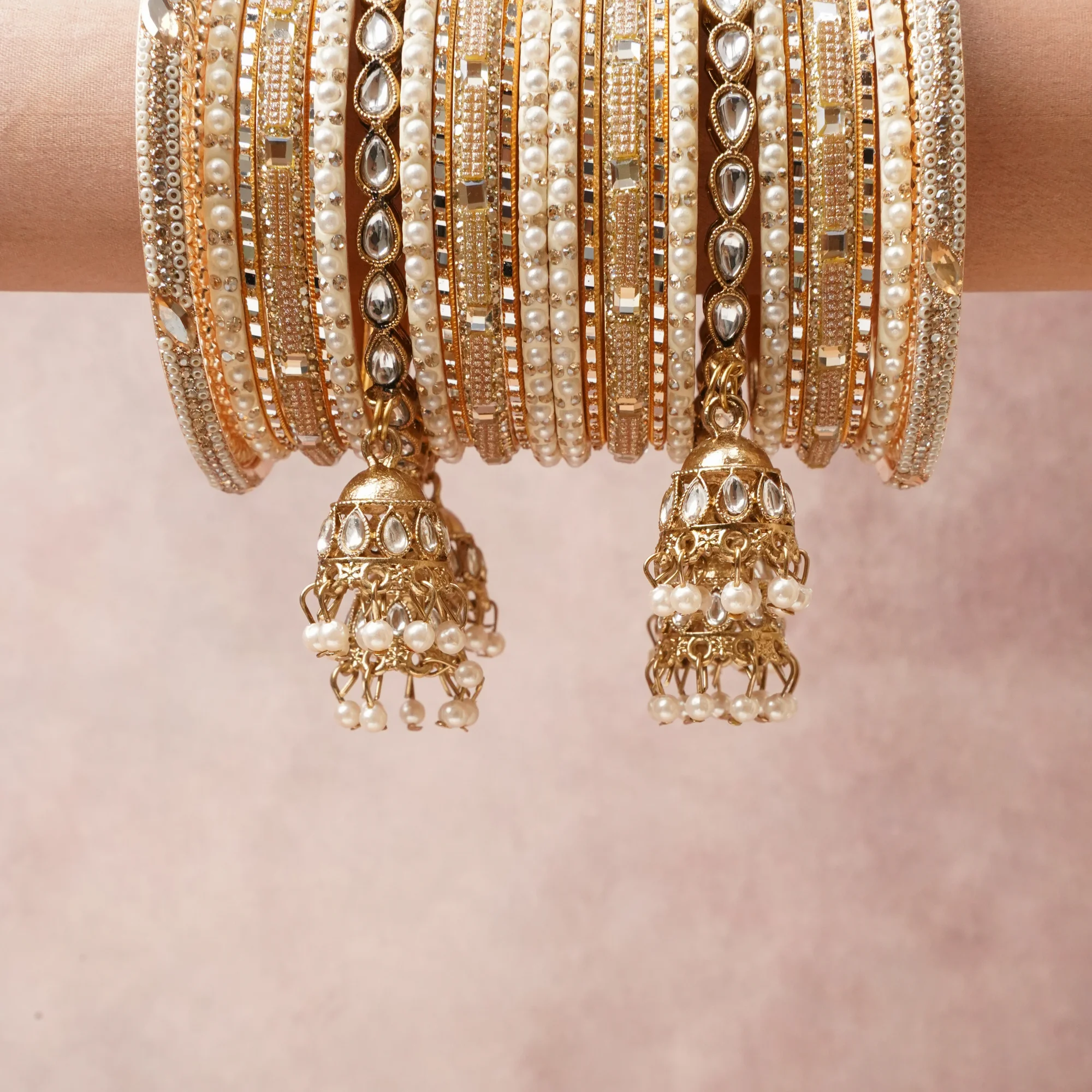 A majestic Gold set, complemented by Clear featuring Gold-toned Metal, Imitation Pearls, Clear Crystal, Enamel. Rich, ceremonial, and designed to be passed through generations.