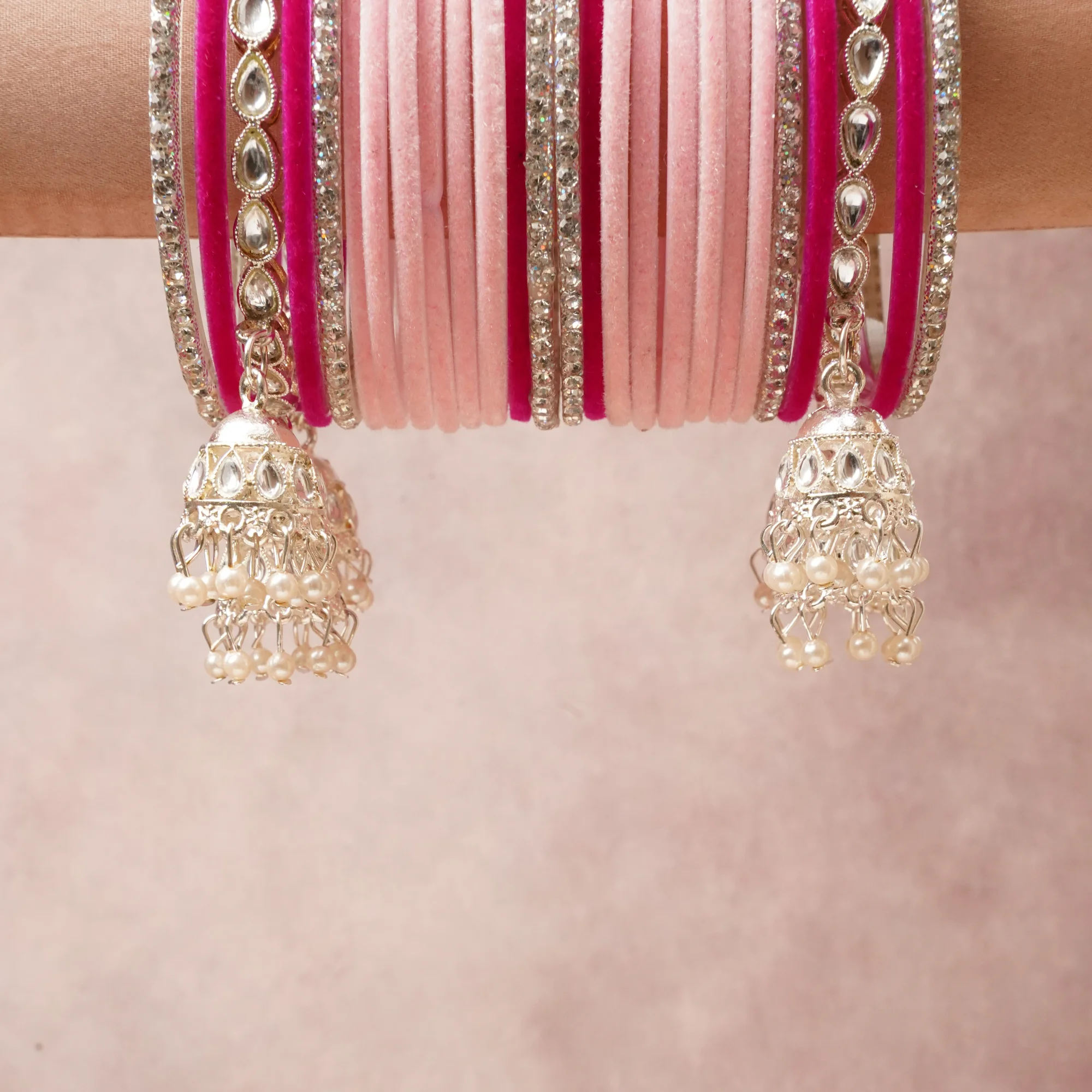 A commanding Pale Pink anchors this beautiful set, enriched with accents of Fuchsia, Silver, Clear that add depth and dimension.