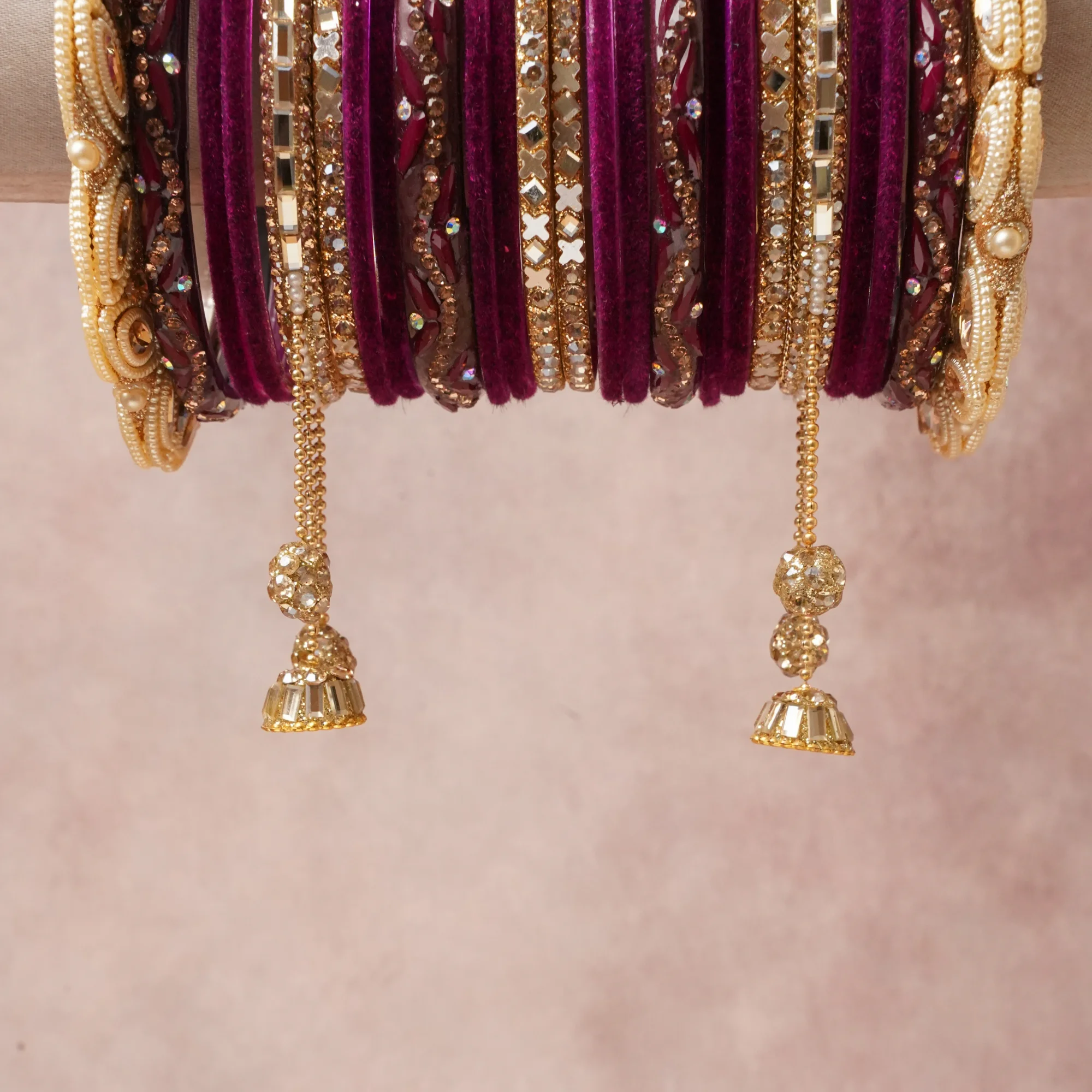 Featuring a striking composition of Velvet, Gold-Toned Metal, Mirror Glass, Faux Pearl, Rhinestones, Text.ile Embroidery, this set carries intricate craftsmanship and strong presence. Grand in form, it is created for moments that deserve to be marked.