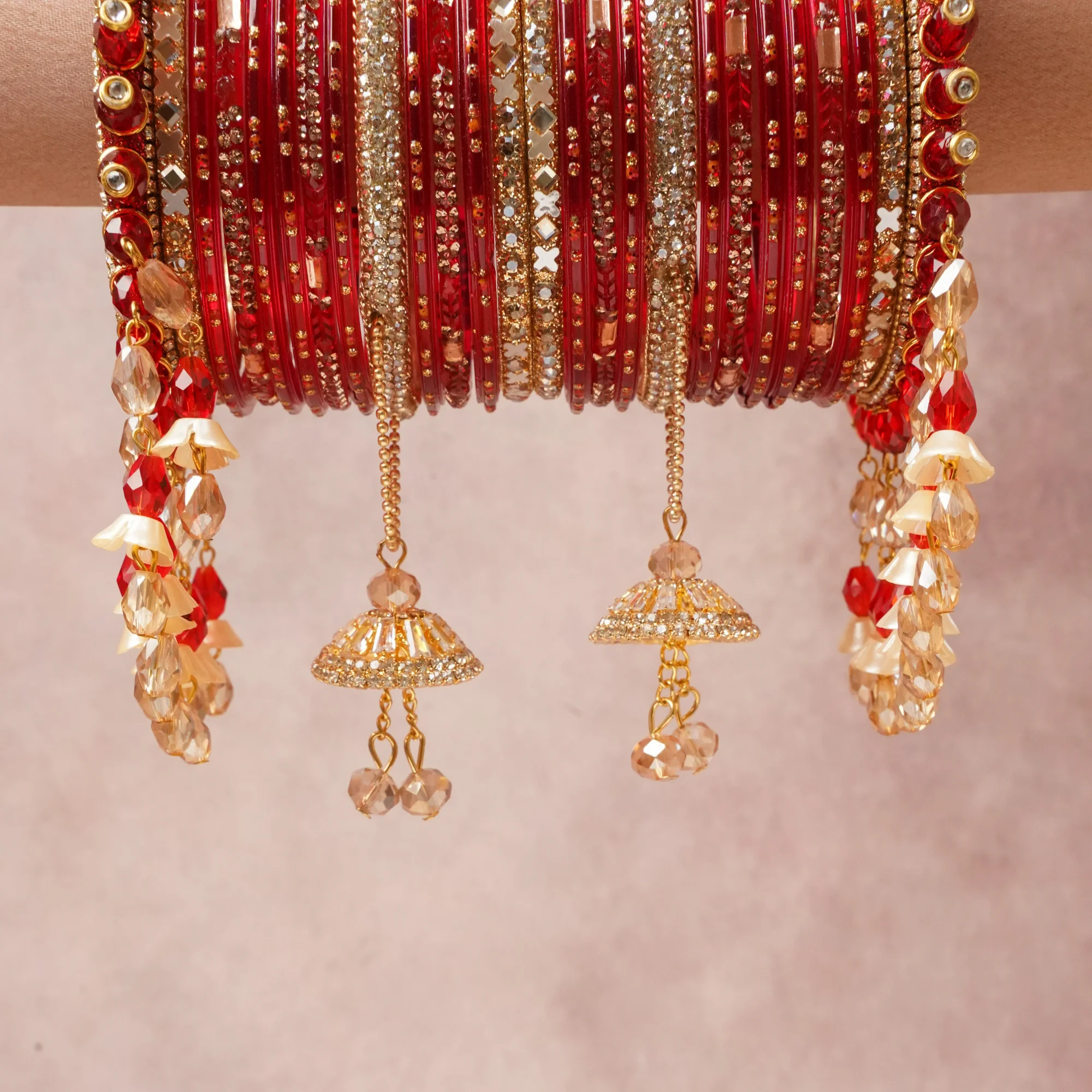 A commanding Deep Red anchors this beautiful set, enriched with accents of Clear, Gold, Champagne that add depth and dimension.