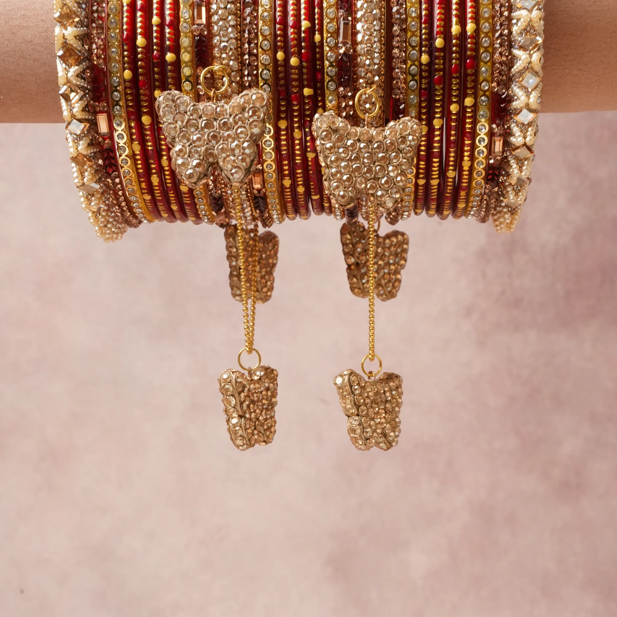 Featuring a striking composition of Glass, Gold-toned Metal, Rhinestones, Seed Beads, Faux Pearls, this set carries intricate craftsman.ship and strong presence. Grand in form, it is created for moments that deserve to be marked.