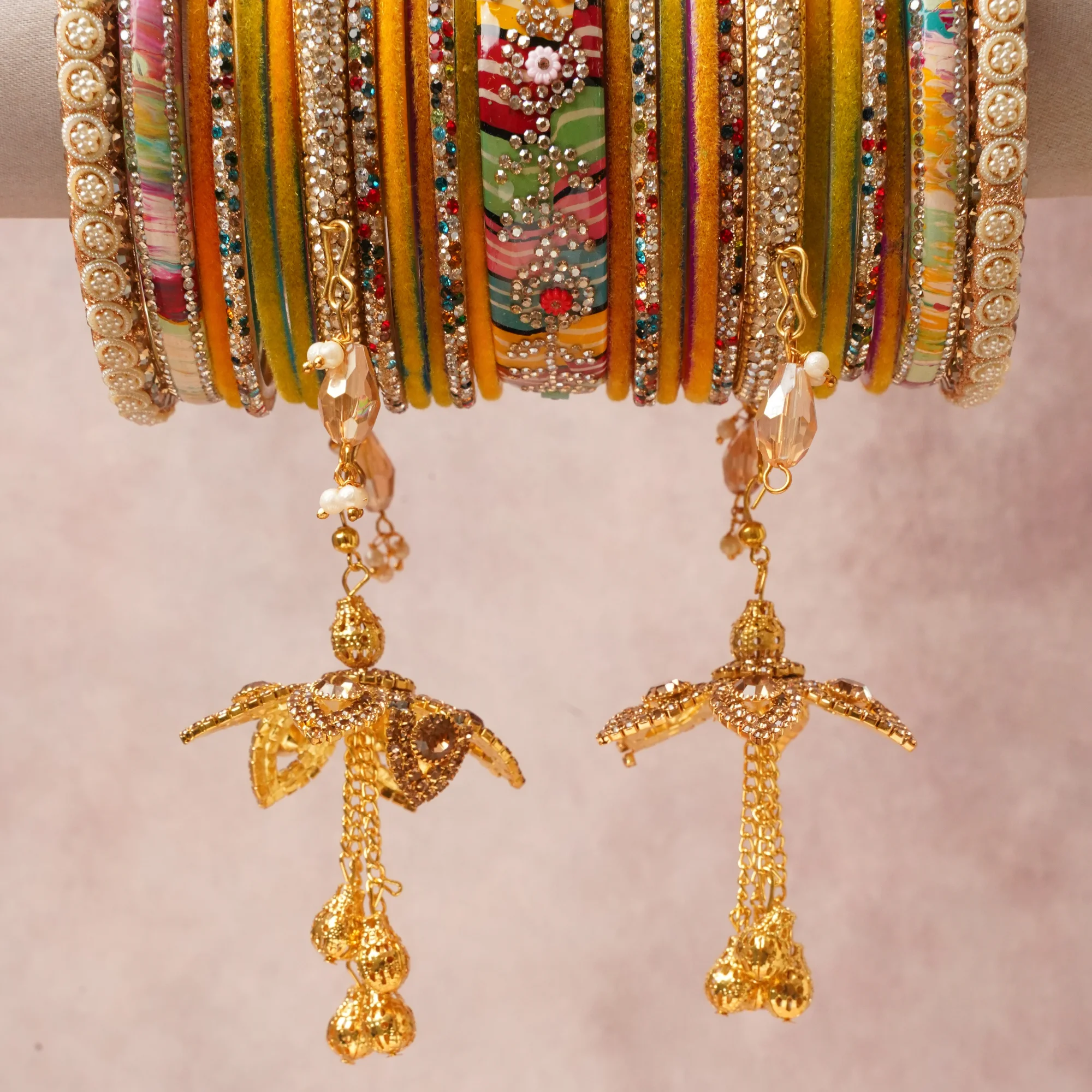 A commanding Multi colour anchors this beautiful set, enriched with accents of Golden Yellow, Crystal Clear, Garnet Red, Emerald Green, Sapphire Blue, Antique Gold, Cream Pearl that add depth and dimension.