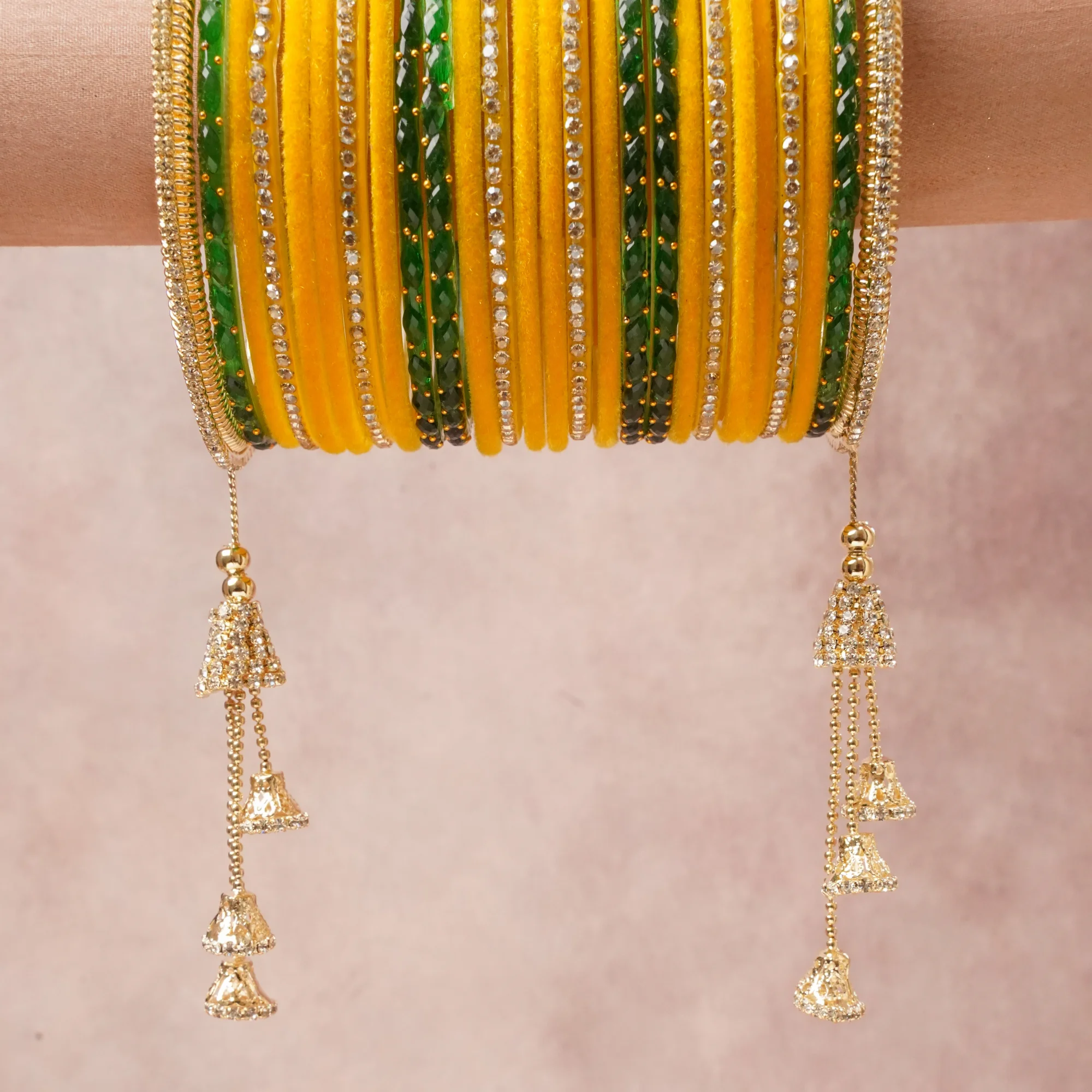 A commanding Vibrant Yellow anchors this beautiful set, enriched with accents of Emerald Green, Clear, Gold that add depth and dimension.