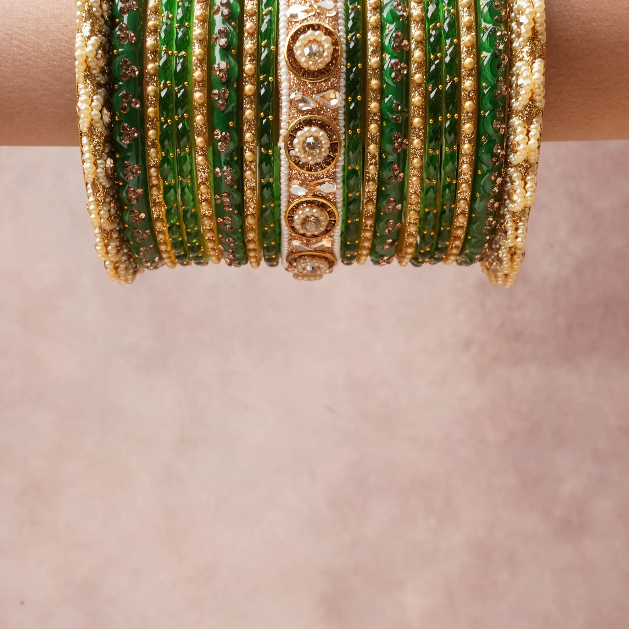 A commanding Emerald Green anchors this beautiful set, enriched with accents of Antique Gold, Cream Pearl, Brilliant White that add depth and dimension.