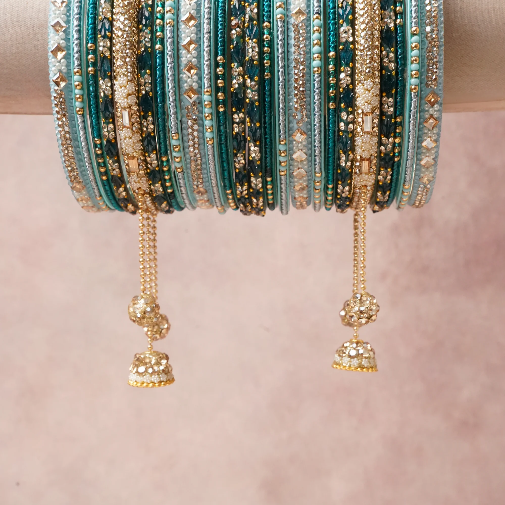 A commanding Light Cyan anchors this beautiful set, enriched with accents of Gold, Clear/Silver that add depth and dimension.