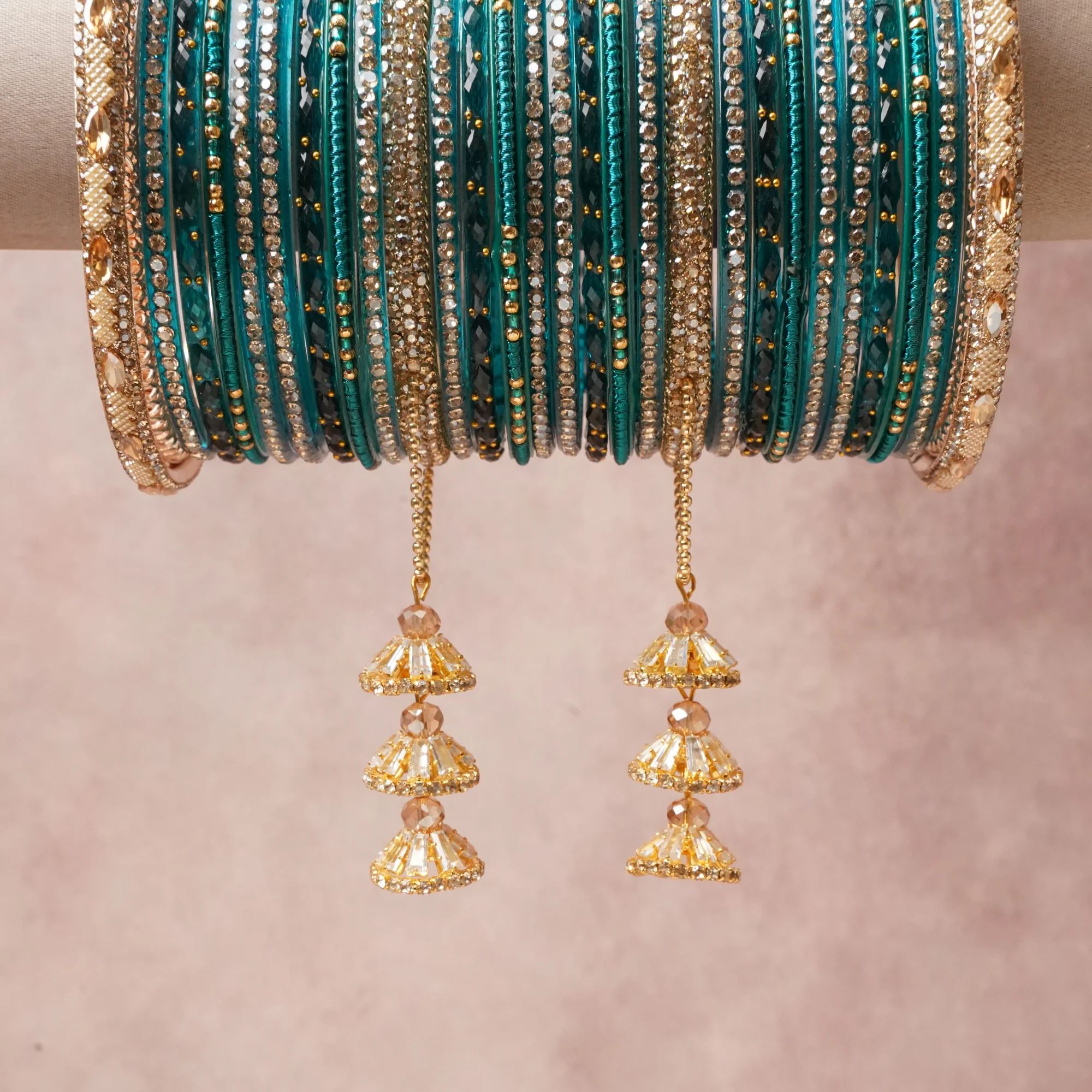 Featuring a striking composition of Glass, Gold-toned Metal, Synthetic Crystal, Seed Beads, Thread, this set carries intricate .craftsmanship and strong presence. Grand in form, it is created for moments that deserve to be marked.