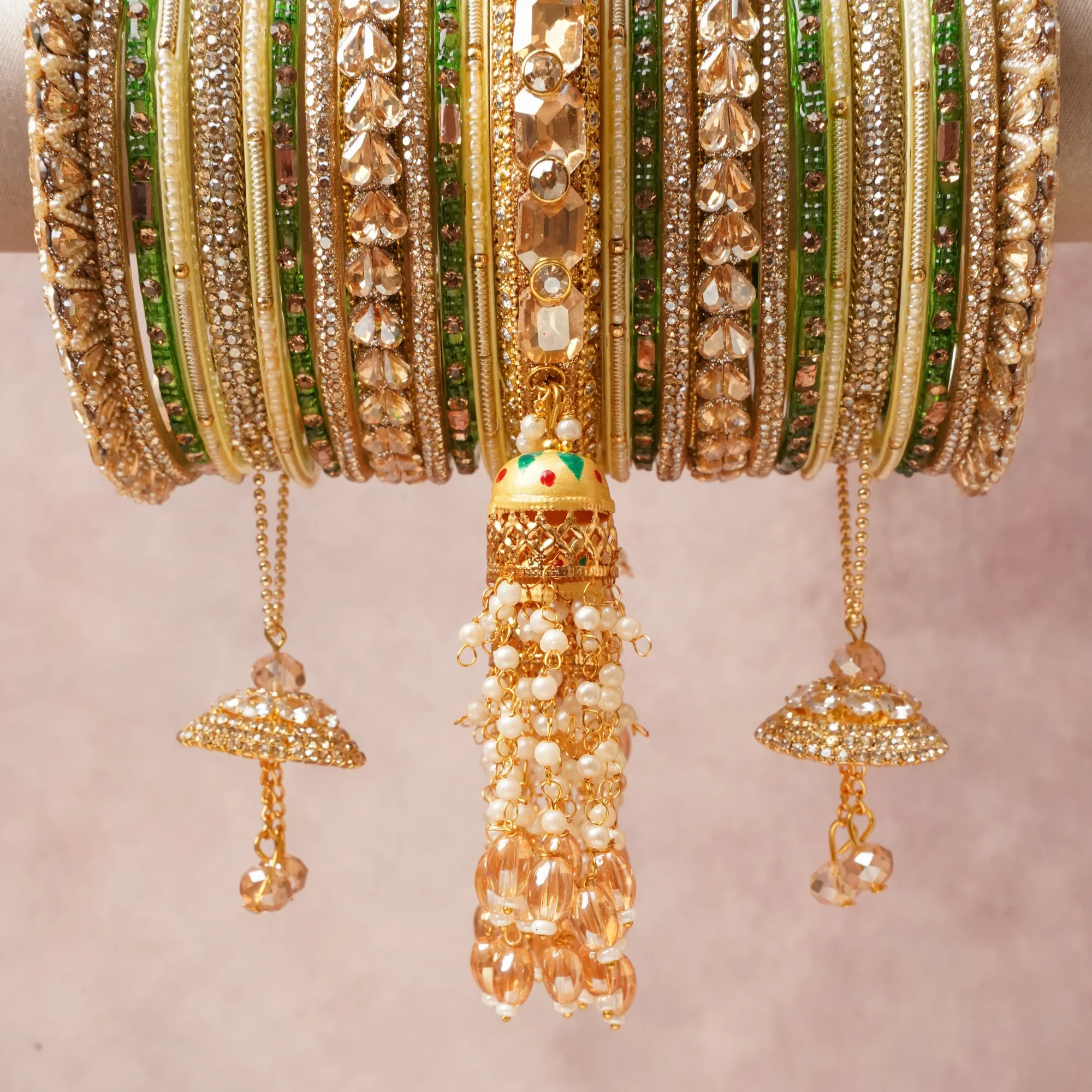 Featuring a striking composition of Gold-toned Metal, Glass, Cubic Zirconia, Faux Pearls, Crystal, this set carrie.s intricate craftsmanship and strong presence. Grand in form, it is created for moments that deserve to be marked.
