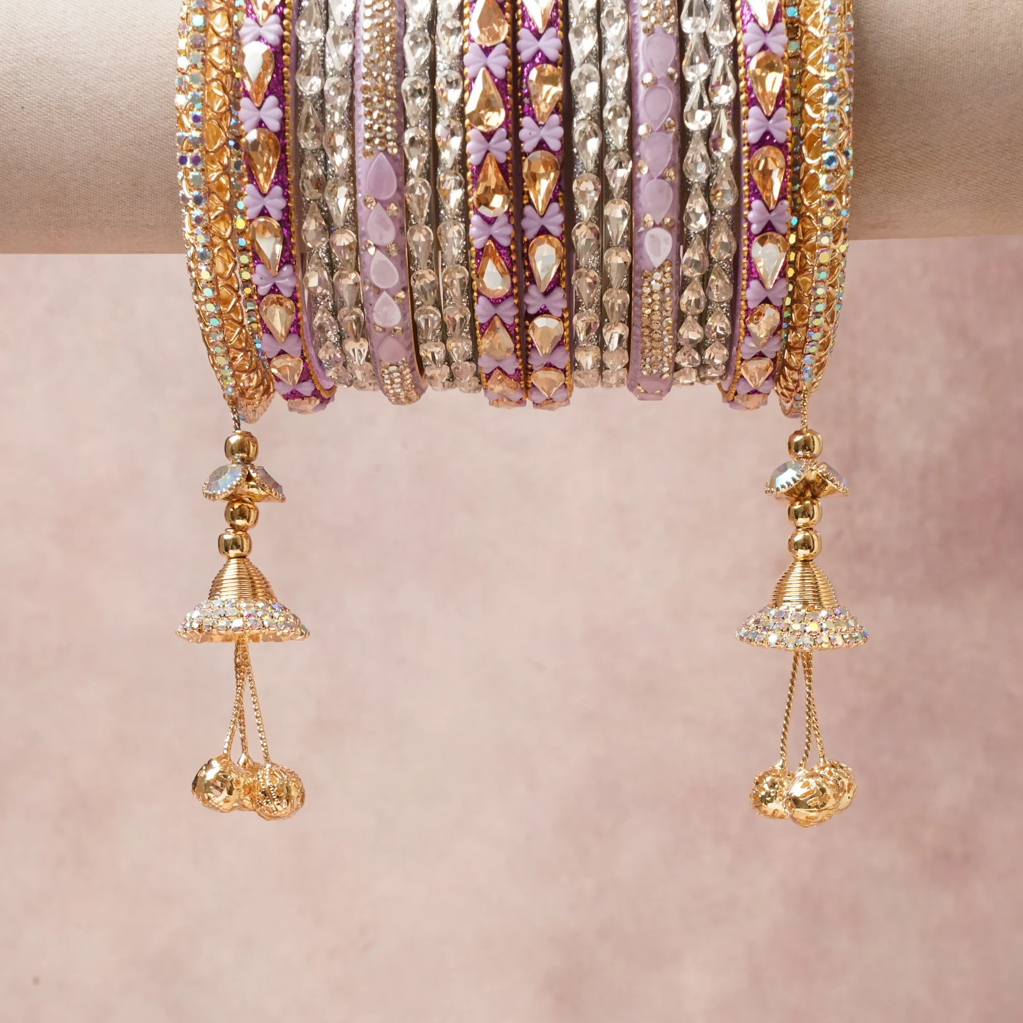 A commanding Lavender anchors this beautiful set, enriched with accents of Clear Faceted, Golden Topaz Faceted, Sparkling Clear Rhinestone that add depth and dimension.