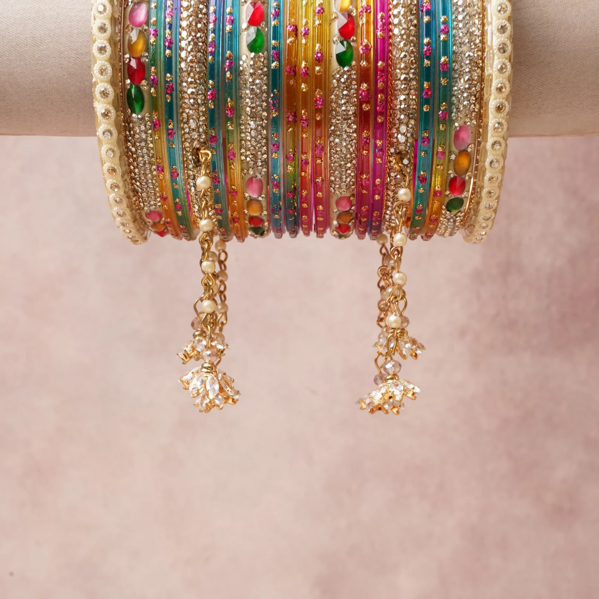 A commanding Multi colour anchors this beautiful set, enriched with accents of Clear, White, Red, Green, Peach, Pink that add depth and dimension.