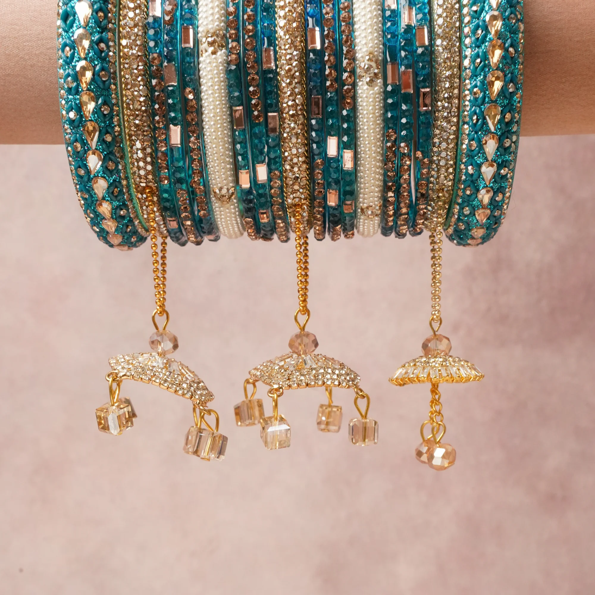 A commanding Teal anchors this beautiful set, enriched with accents of Gold, White, Rose Gold that add depth and dimension.