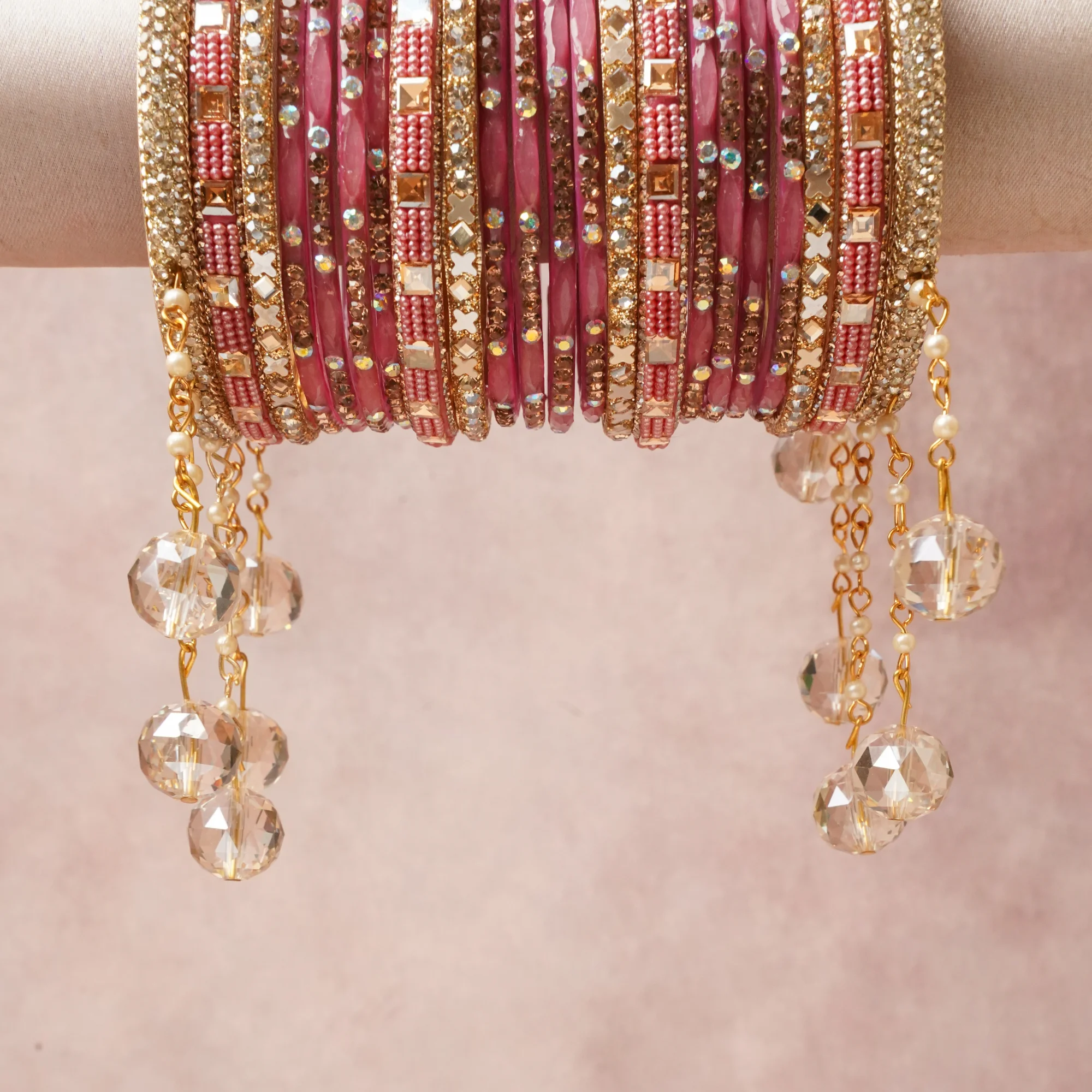 A commanding Rose Pink anchors this beautiful set, enriched with accents of Gold, Clear Crystal, Pearl White, Mirror Silver that add depth and dimension.