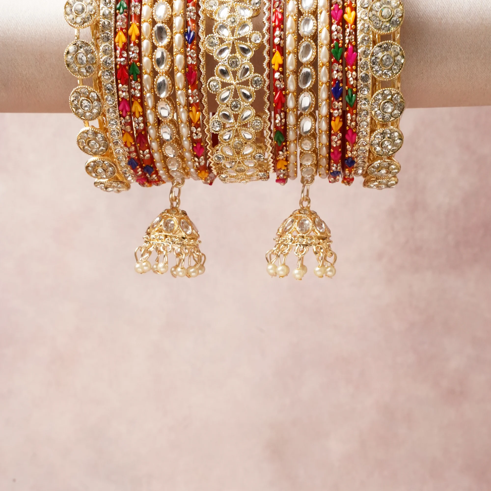 The Femminari Crown- Jewellery beyond luxury. A crown Multi colour set, complemented by Clear, Off-White, Ruby Red, Emerald Green, Sapphire Blue, Marigold Yellow, Fuchsia Pink, Vermilion Orange, featuring Gold, Kundan, Clear Gemstone Simulants, Pearl.s, Glass Beads, Lac. A treat for the eyes, hands and heart- absolutely unforgettable.