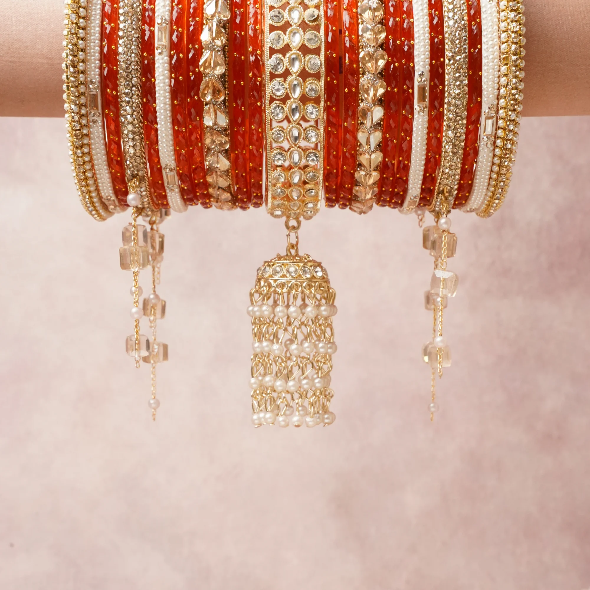 The Femminari Crown- Jewellery beyond luxury. A crown colour Red set, complemented by Pearl White, Clear, featuring Glass, Gold-plated Metal Alloy, Pearls, Cubic Zirconia, Crystal. A treat for the eyes, hands and heart- absolutely unforgettable.