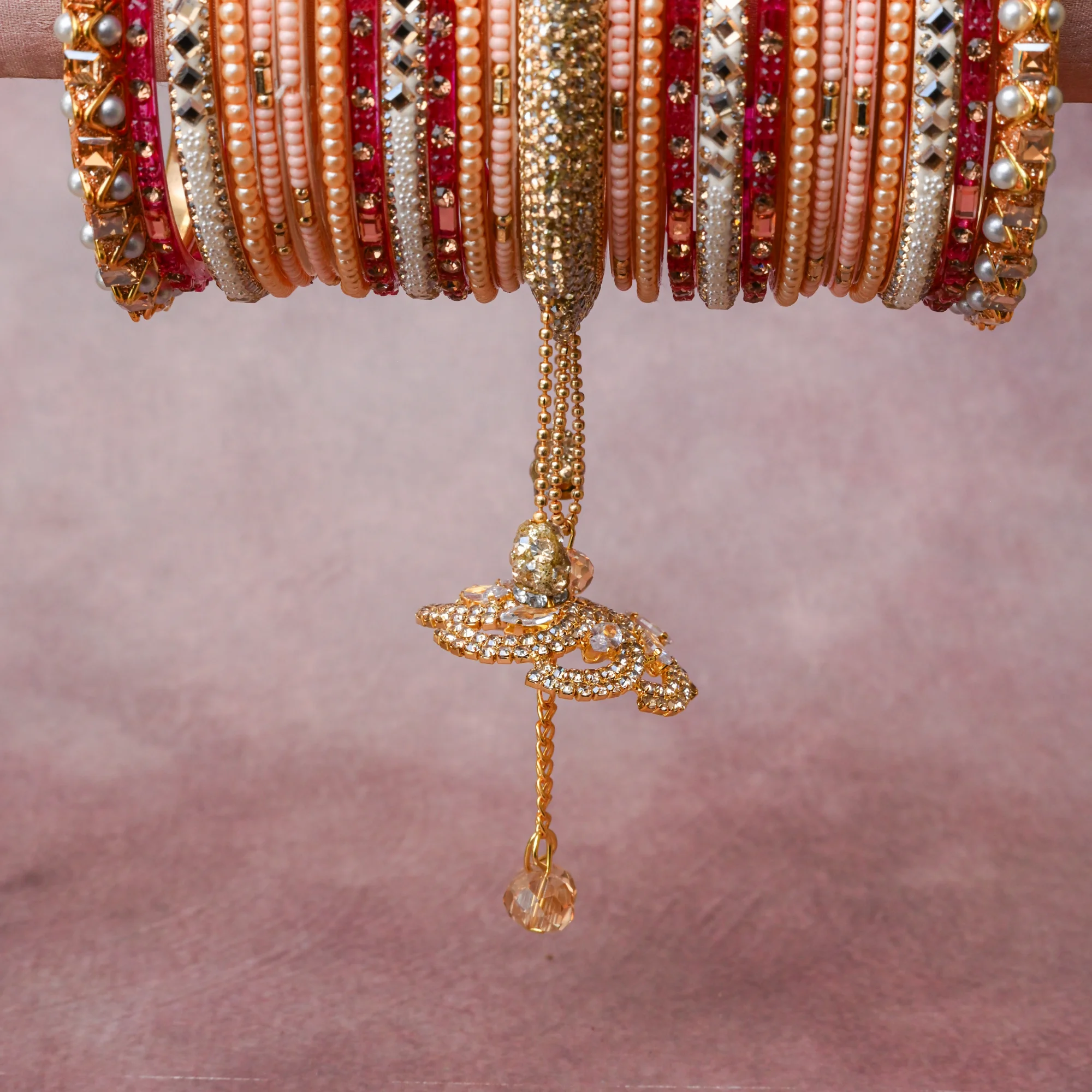 A thoughtful composition of Gold-toned Metal, Glass Beads, Crystal Rhinestones, Faux Pearls, Fabric, designed to feel complete without being heavy..