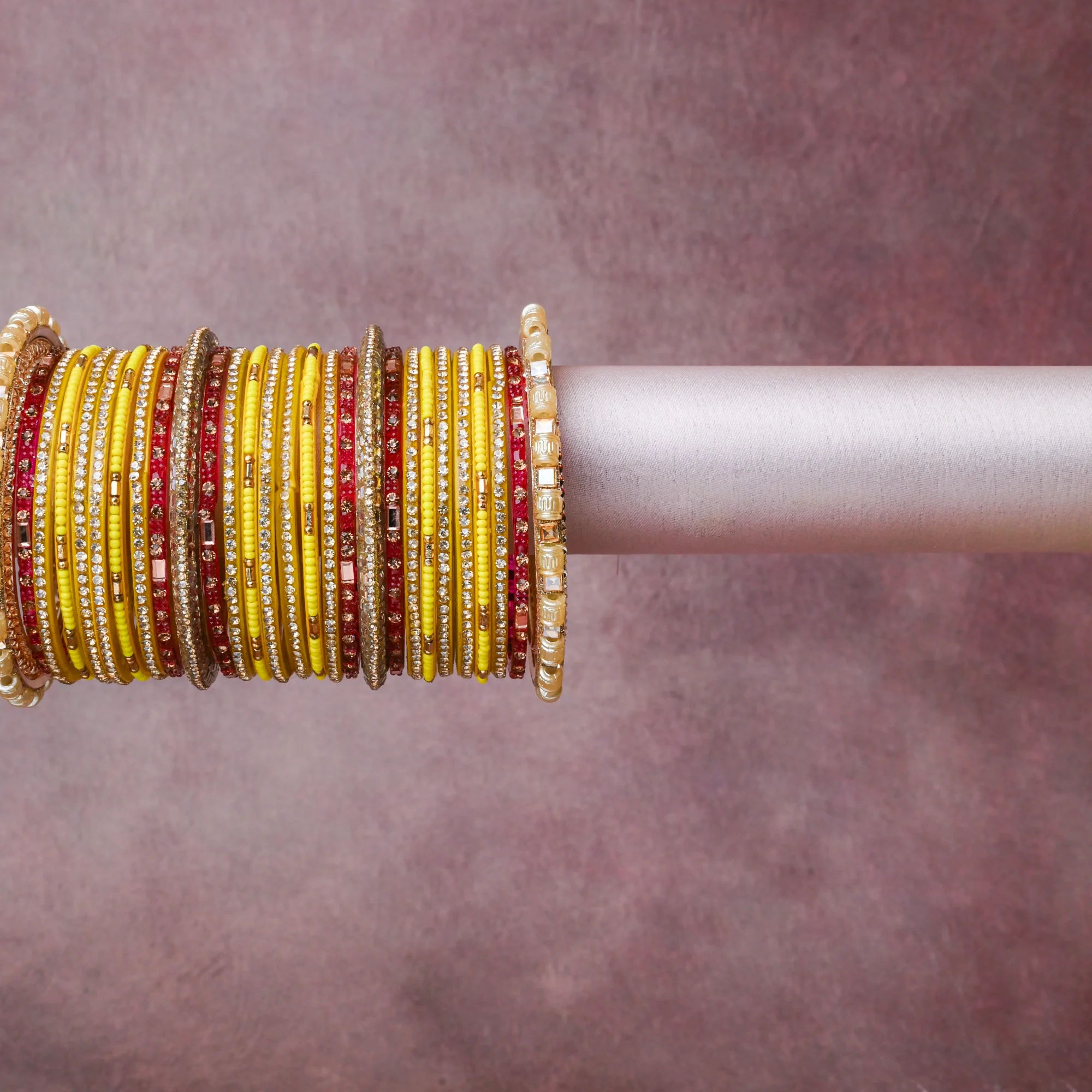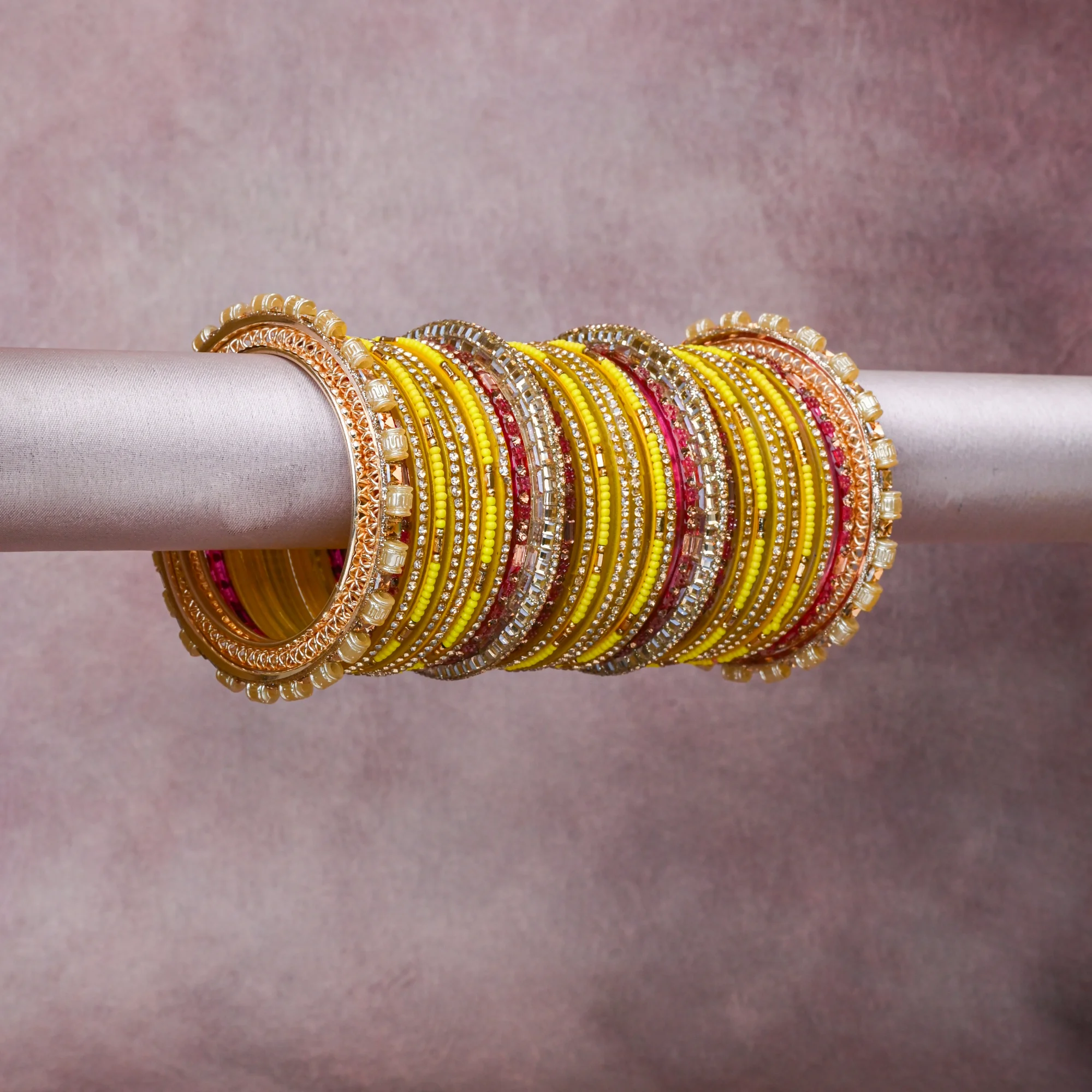 A grounding Vibrant Yellow forms the heart of the set, while touches of Clear Crystal, Rose Gold, Warm Gold, Cream Pearl add charm.