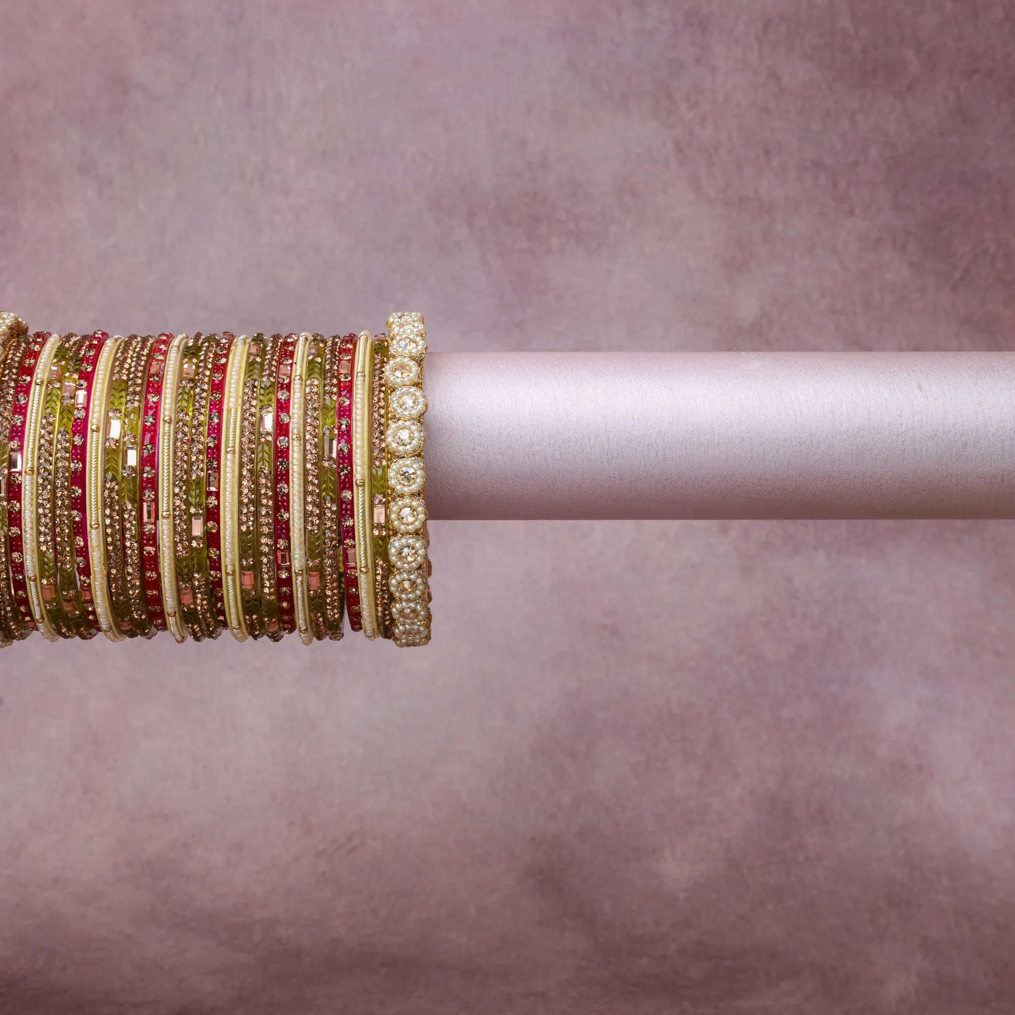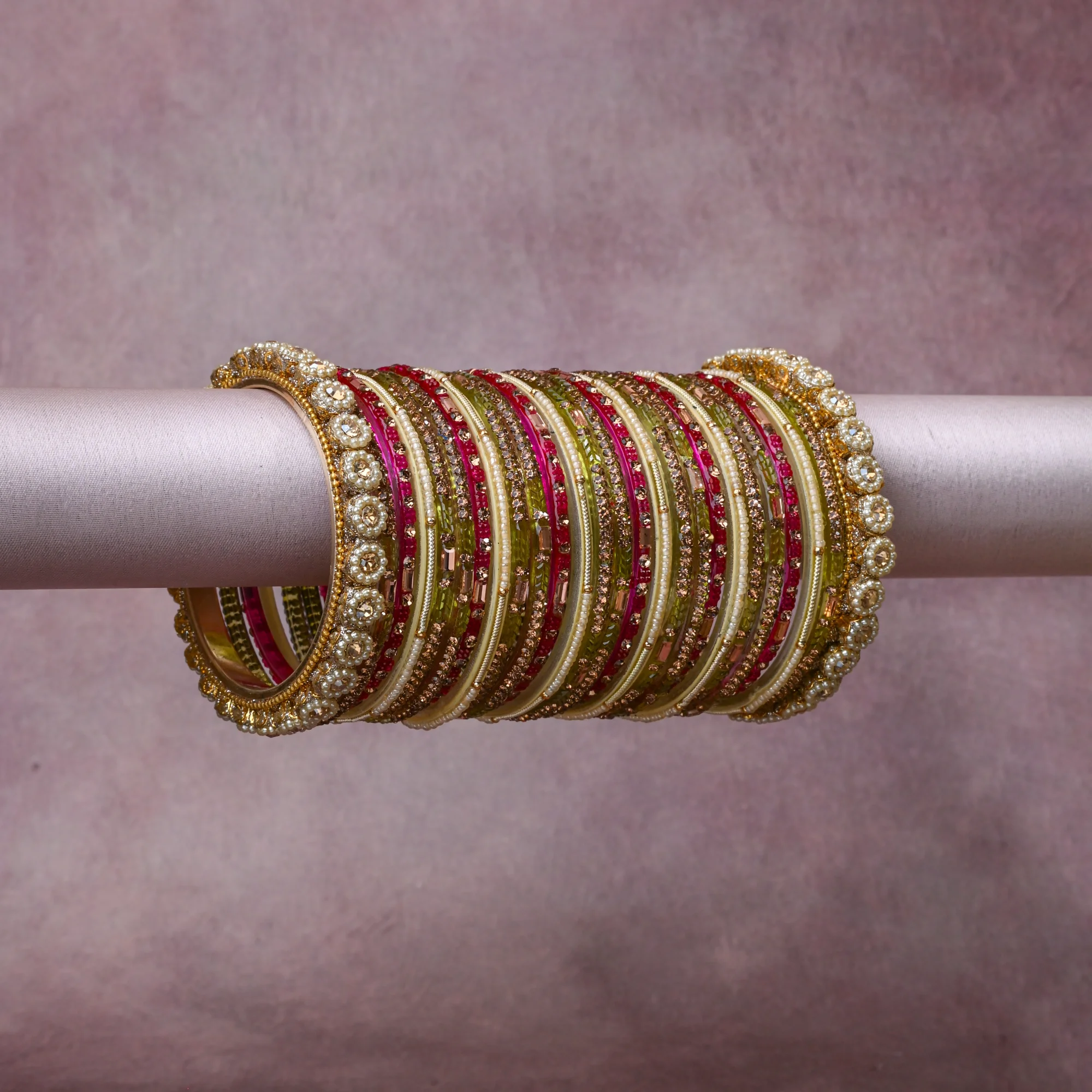 A thoughtful composition of Gold-plated Metal, Glass, Faux Pearls, Rhinestones, Silk Thread, designed to feel complete without being heavy.