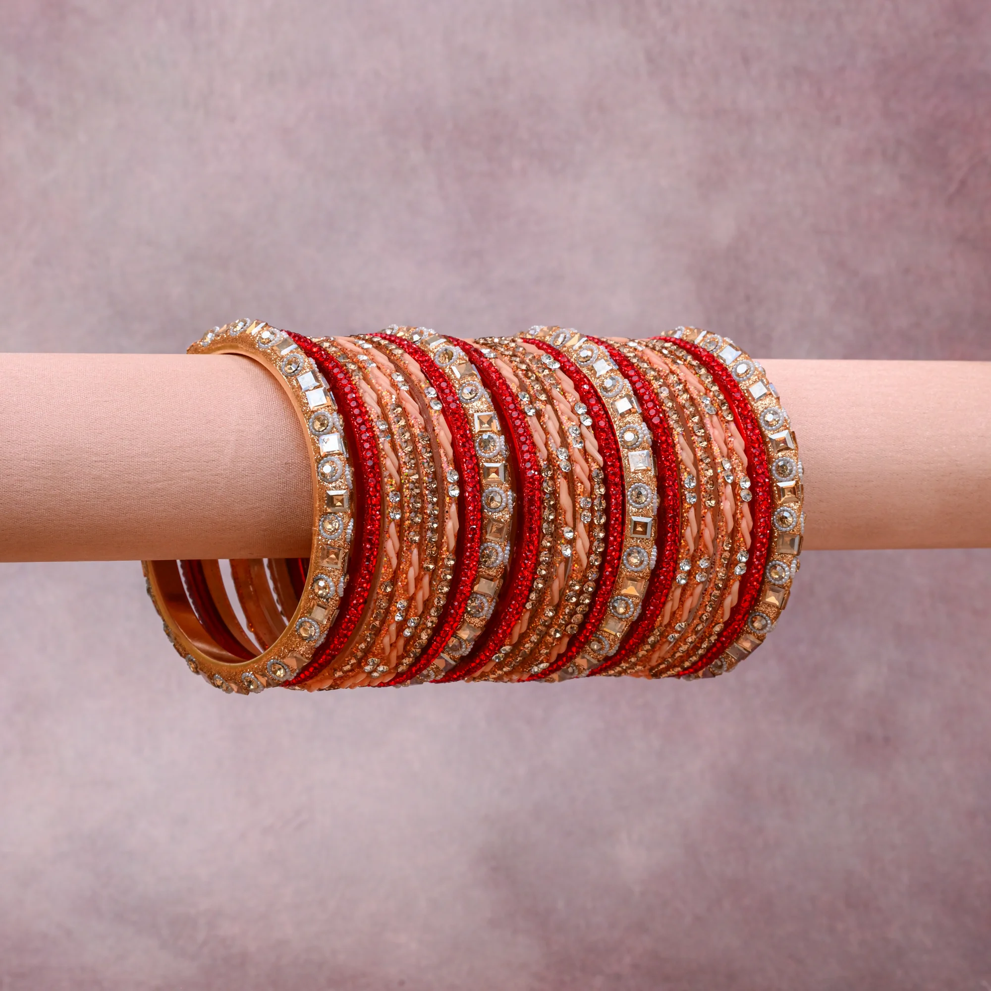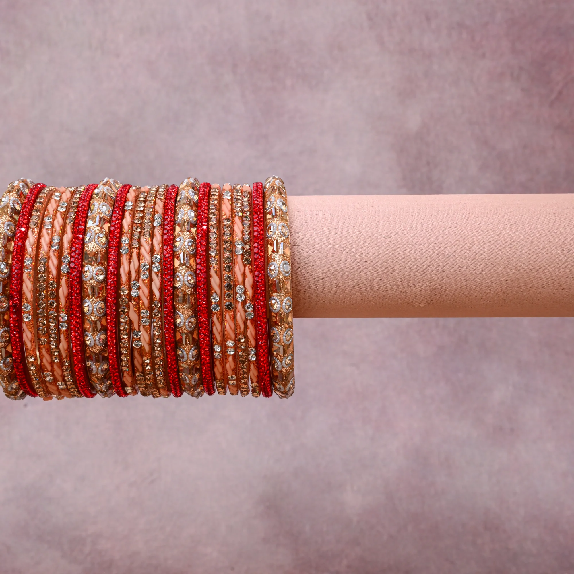 A grounding Peach forms the heart of the set, while touches of Vibrant Red, Clear Crystal, Champagne Gold, Cream add charm.