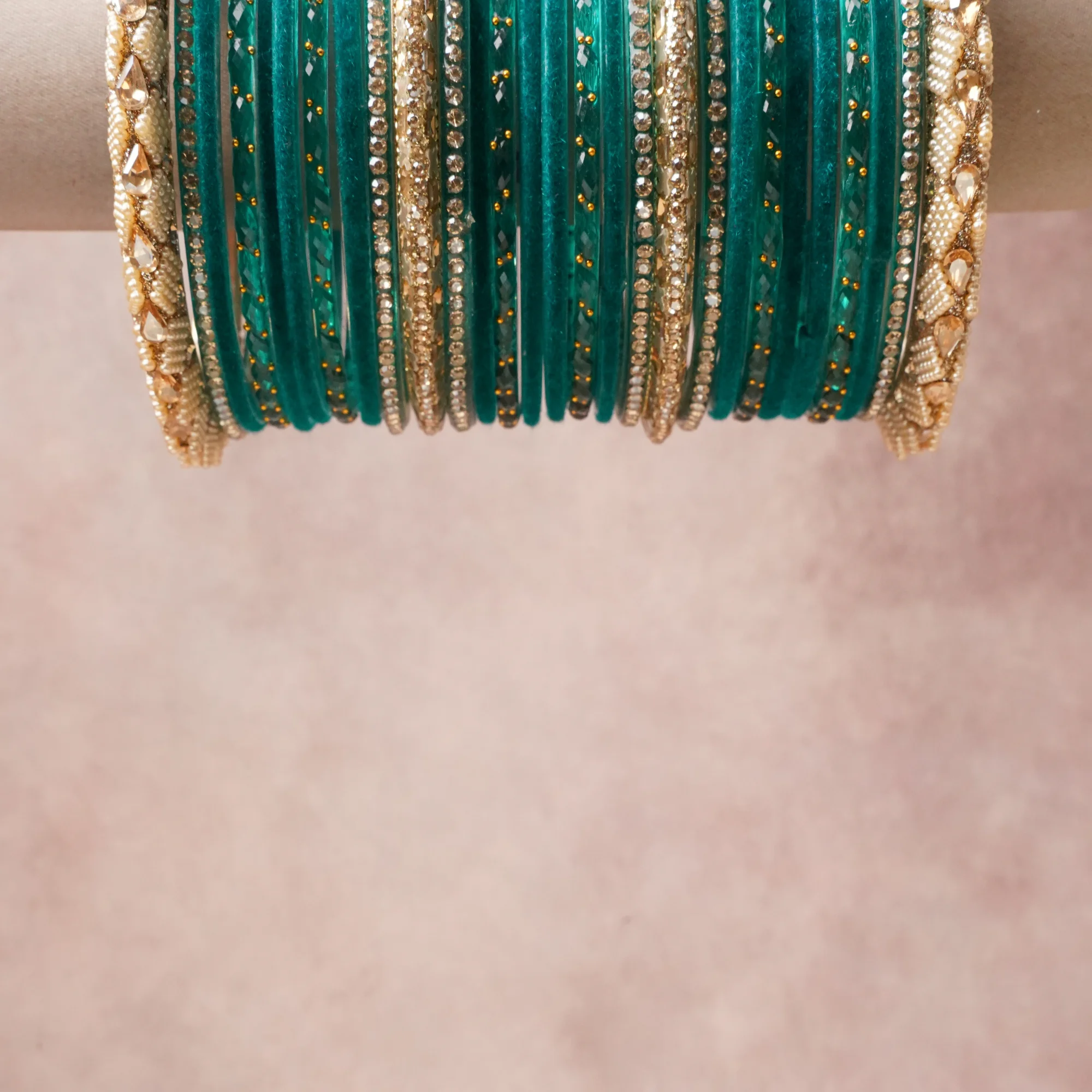 A grounding Teal forms the heart of the set, while touches of Ivory, Clear, Champagne add charm.