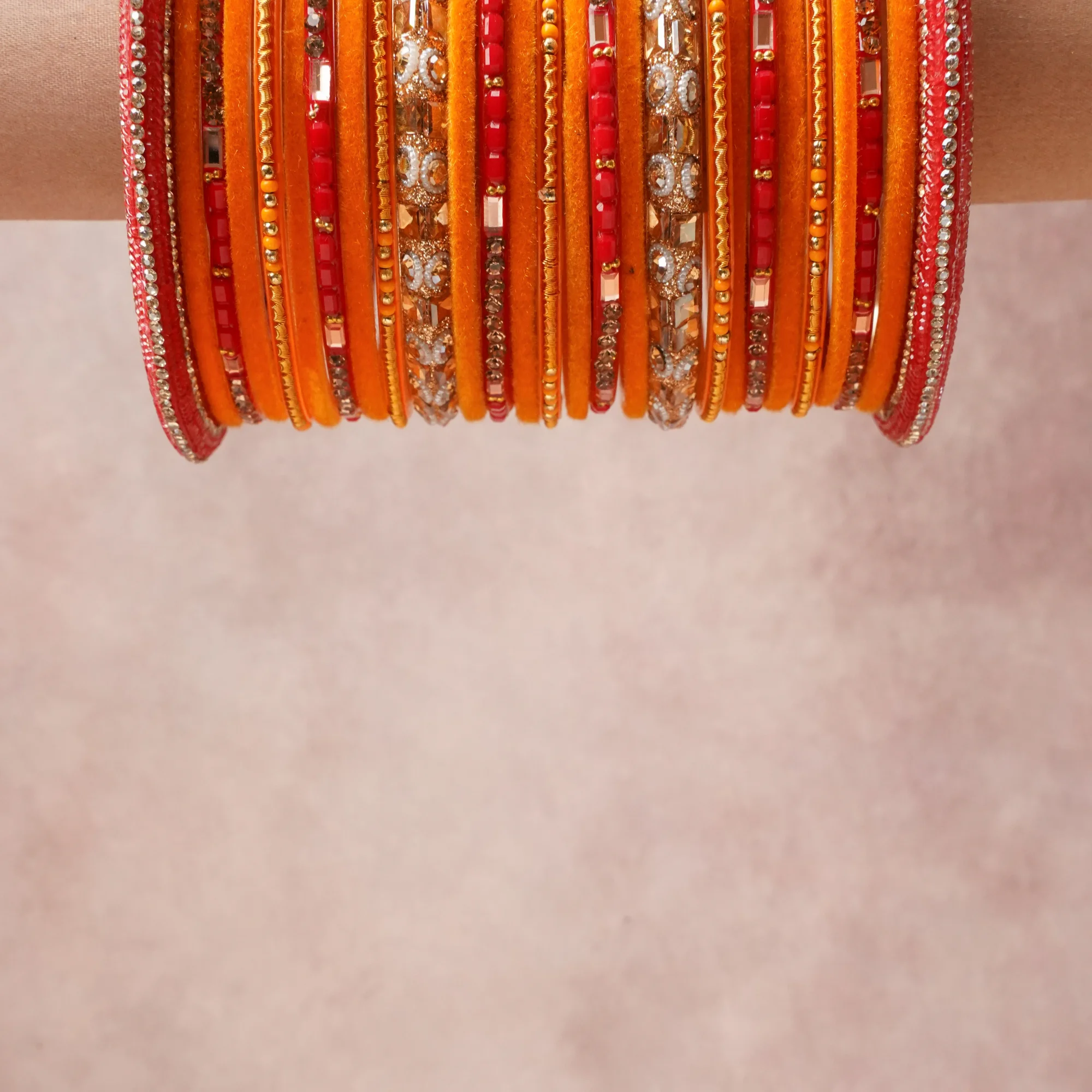A grounding Saffron Orange forms the heart of the set, while touches of Gold, Ivory add charm.